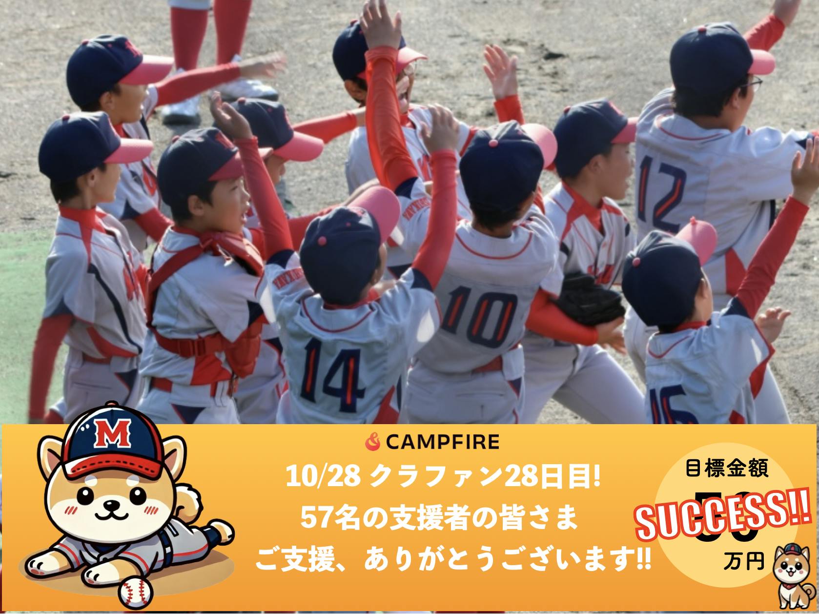 皆さまからの温かいご支援が、子どもたちの全国大会挑戦を支える大きな力となり、私たち宮和学童野球クラブは、いよいよ大きな一歩を踏み出すことができました!本当にありがとうございます!