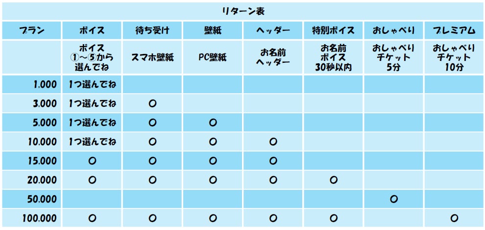 5種類のボイスの中から欲しいボイスを備考欄に番号を入力してください。