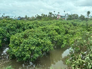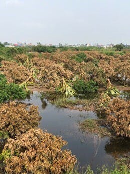そんな中、川に囲まれたライチ畑は水没。強風で木が大きく揺れ根っこも切れてしまい、全体が弱くなっているところにどんどん川の水が入り、水かさは増すばかり。村の皆さんが大事に大事に育ててきたライチの木が、長期間にわたり浸水してしまったため根腐れを起こし、日に日に枯れてきてしまっています。