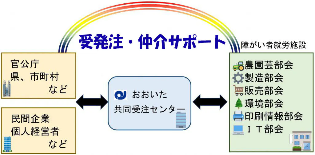 おおいた共同受注センター(https://oitakyojyu.net/)は、就労系福祉事業所の生産活動(お仕事)を支援する一般社団法人です。