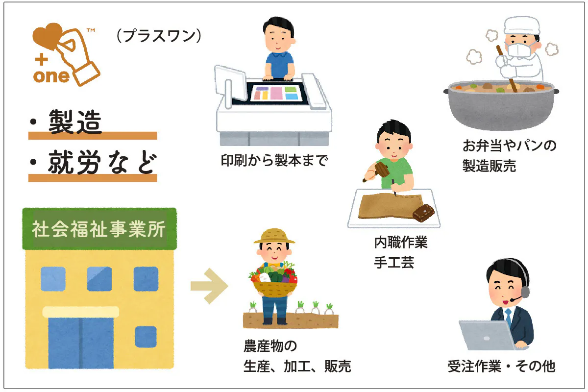 皆様の商品の購入や仕事の発注を通じて、福祉事業所の利用者が自立しやすい環境を作り上げることがこのプロジェクトの目的です。