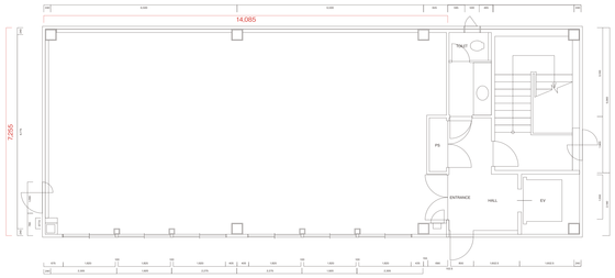 さておき、この図面の通りでスケルトンの状態という訳ではありません。下の写真の正面も右も図面にはないパーテション。