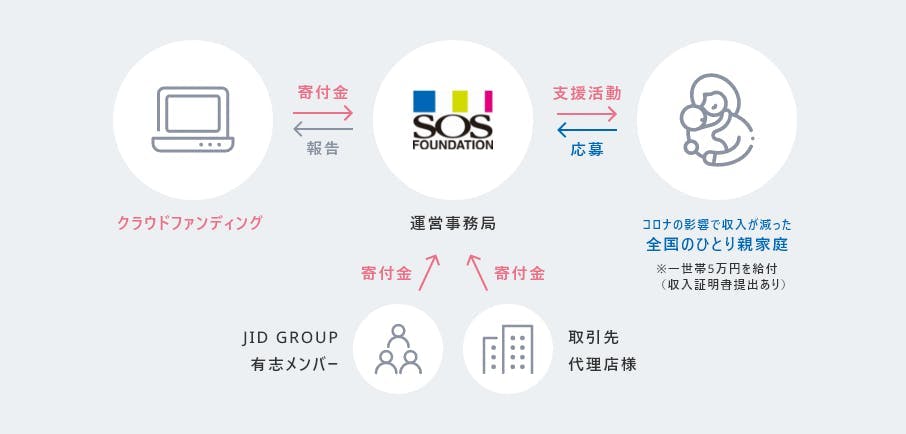 様々な影響により収入が著しく減少してしまった「ひとり親家庭」一世帯につき5万円の給付支援を行います。詳しい応募方法につきましては、特定非営利活動法人Standard Opinion Societyのホームページをご確認ください。