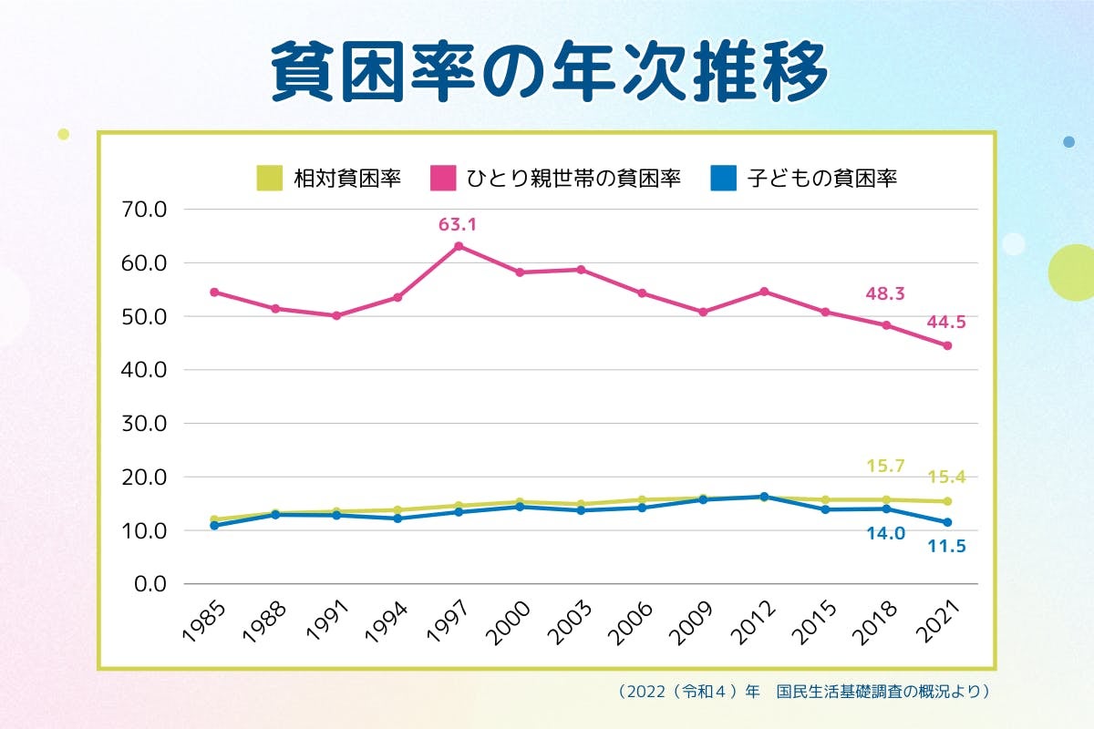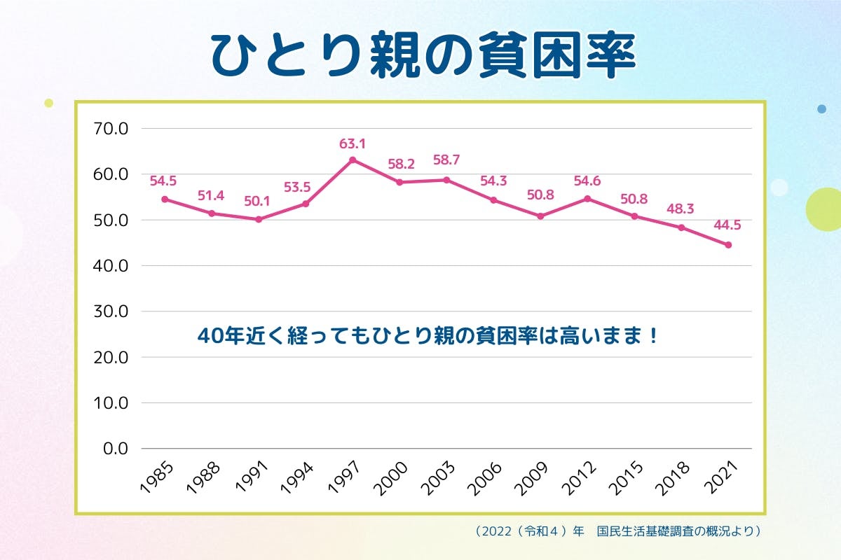 子どもの貧困が問題視されている日本。その中でもひとり親世帯の貧困率は44.5%と半数に近い家庭が貧困状態となっています。