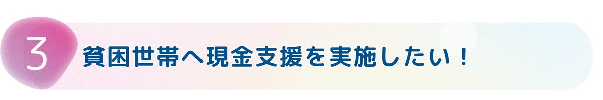 わたしたちは、望まない環境の中で頑張りたくてもがいている子どもや若者が、夢や希望に向けて進める手助けがしたいと考え、新たに学生への現金支援プロジェクトを立ち上げようと計画しています。