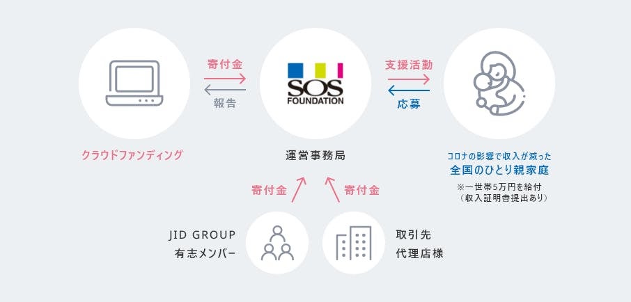 一定の審査のもと、一世帯につき 5万円を給付する今回のプロジェクト。皆様からいただいたご寄付は、ひとり親家庭への支援に充てさせていただきます。ぜひ、ご協力をお願いいたします!