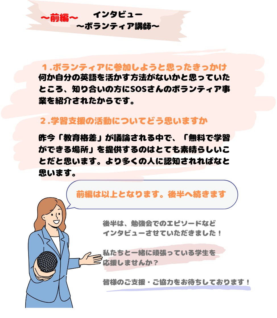 ★~前編~★ ボランティア講師の方へインタビュー!!