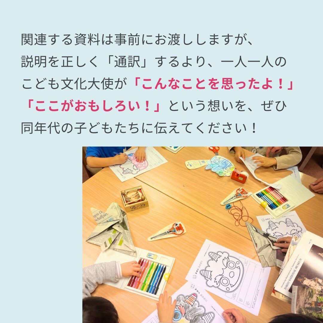そのため、イベントでは子供文化大使を募り、子供が主体的にリサーチし、伝統工芸について学び探求と発表を通じて、国際理解を深めます。
