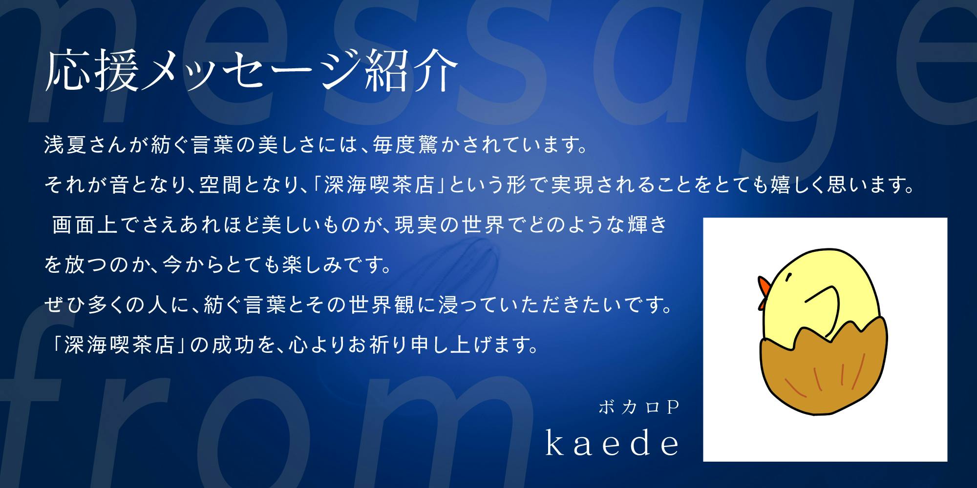 「深海喫茶店」開店に向けていただいた、応援メッセージを紹介させていただきます。