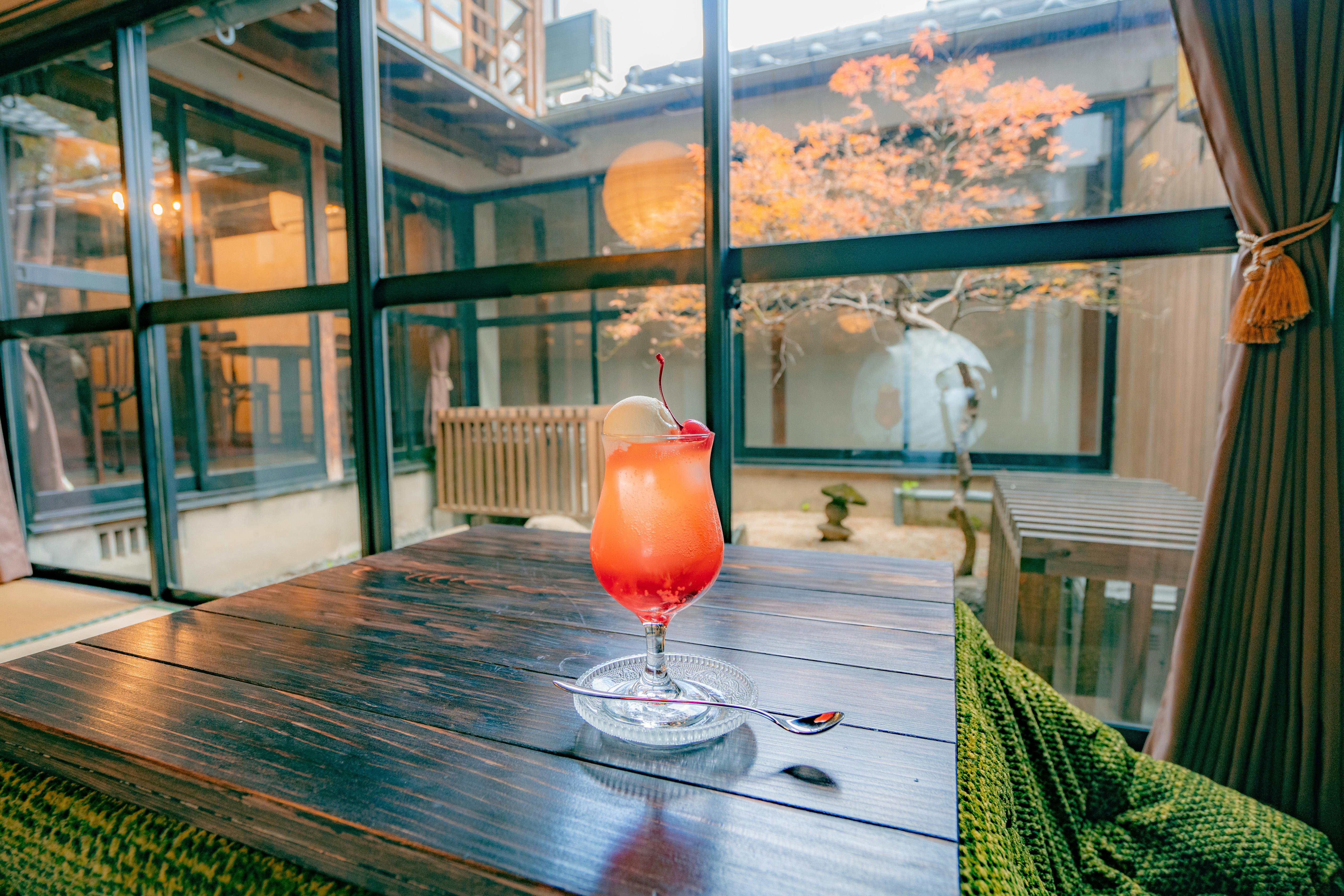 和室のこたつ席からも、眺めながら喫茶時間を楽しんでいただけますので、ごゆっくりお過ごしください。