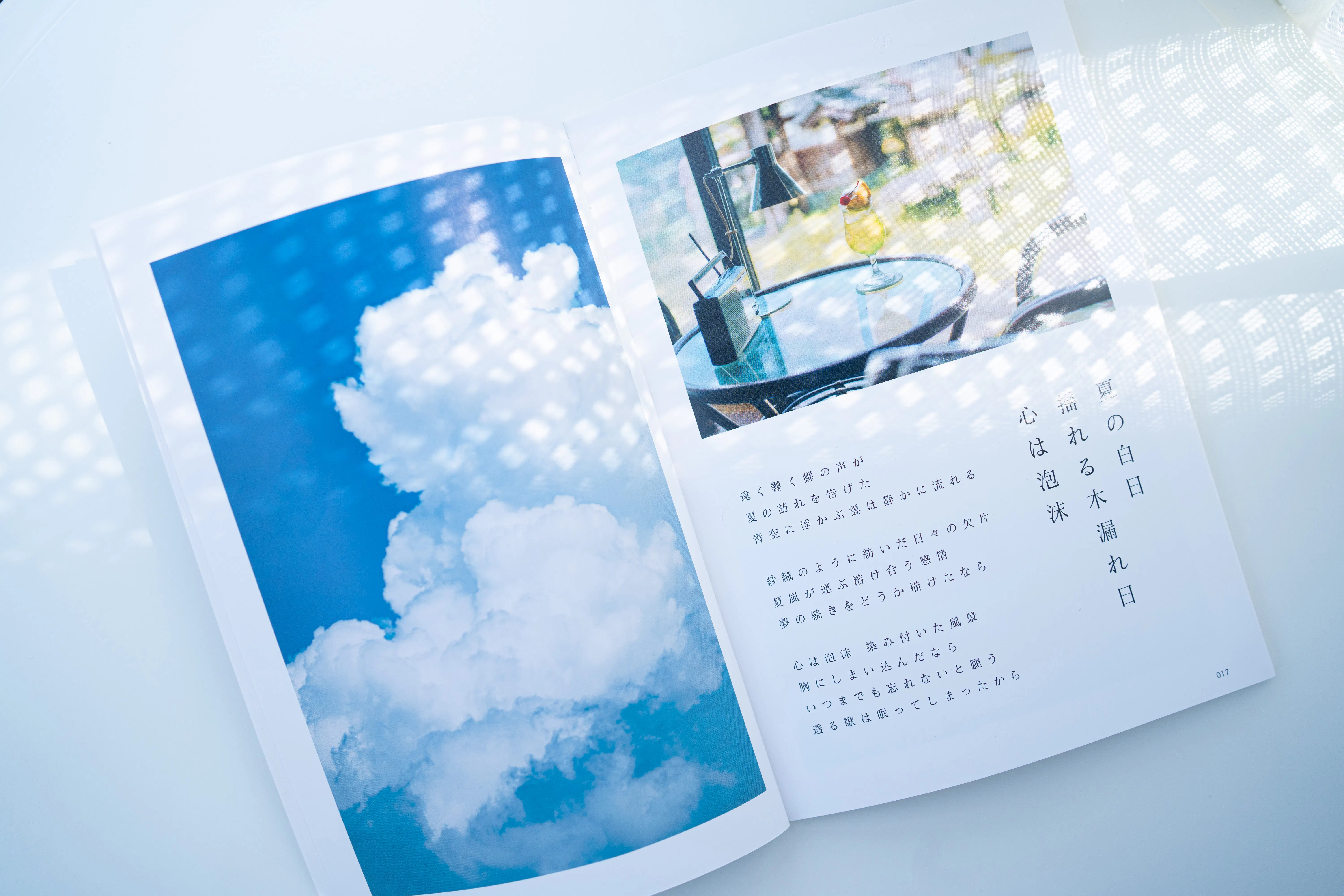 全50ページにわたる写真集には、クリームソーダの色彩と四季の風景を織り交ぜて、手に取った時、小さな旅を届けられるような工夫をしてみました。