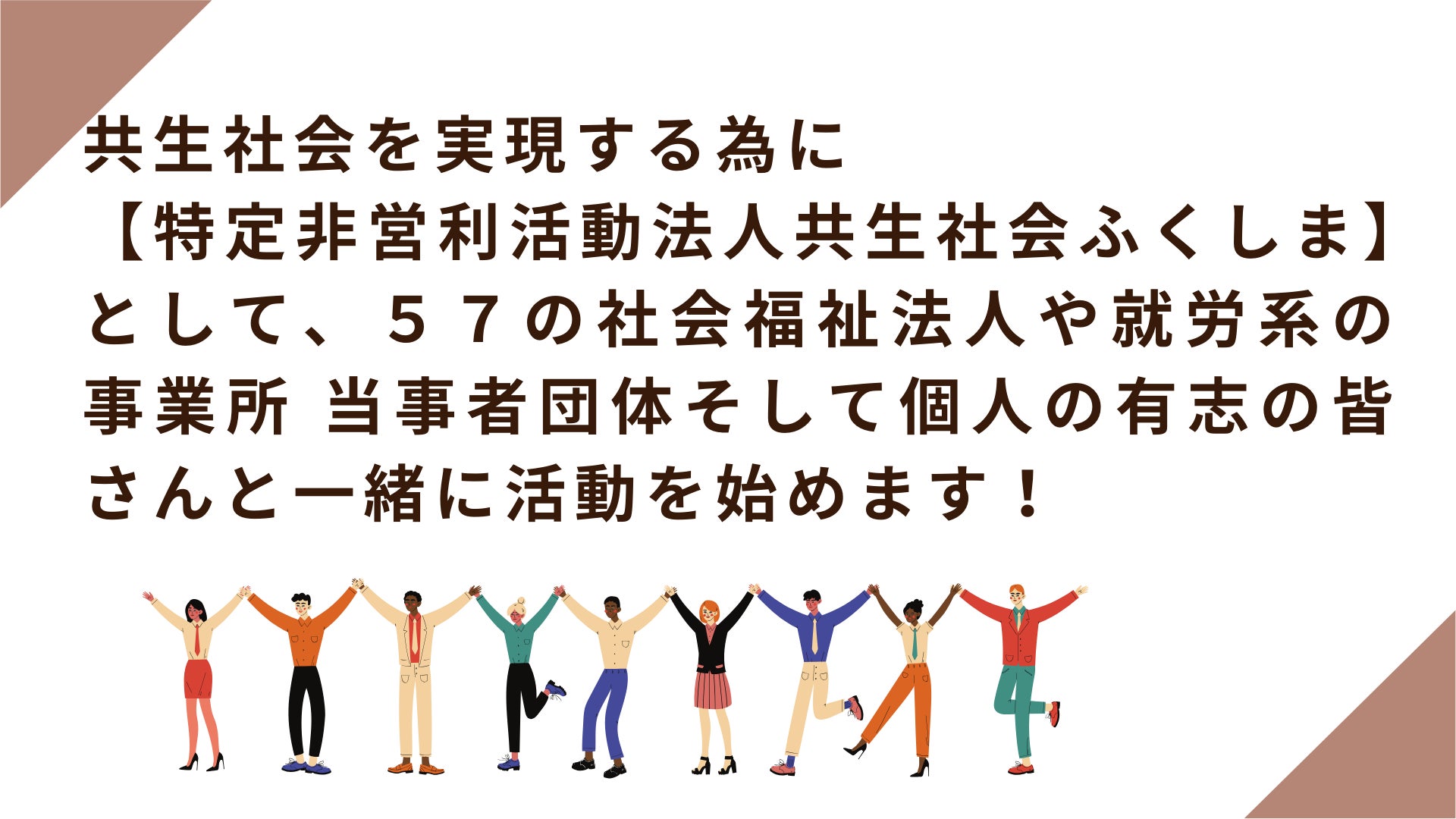 福島市を中心とした県北地区にある社会福祉法人等で構成する「特定非営利活動法人共生社会ふくしま」と申します。