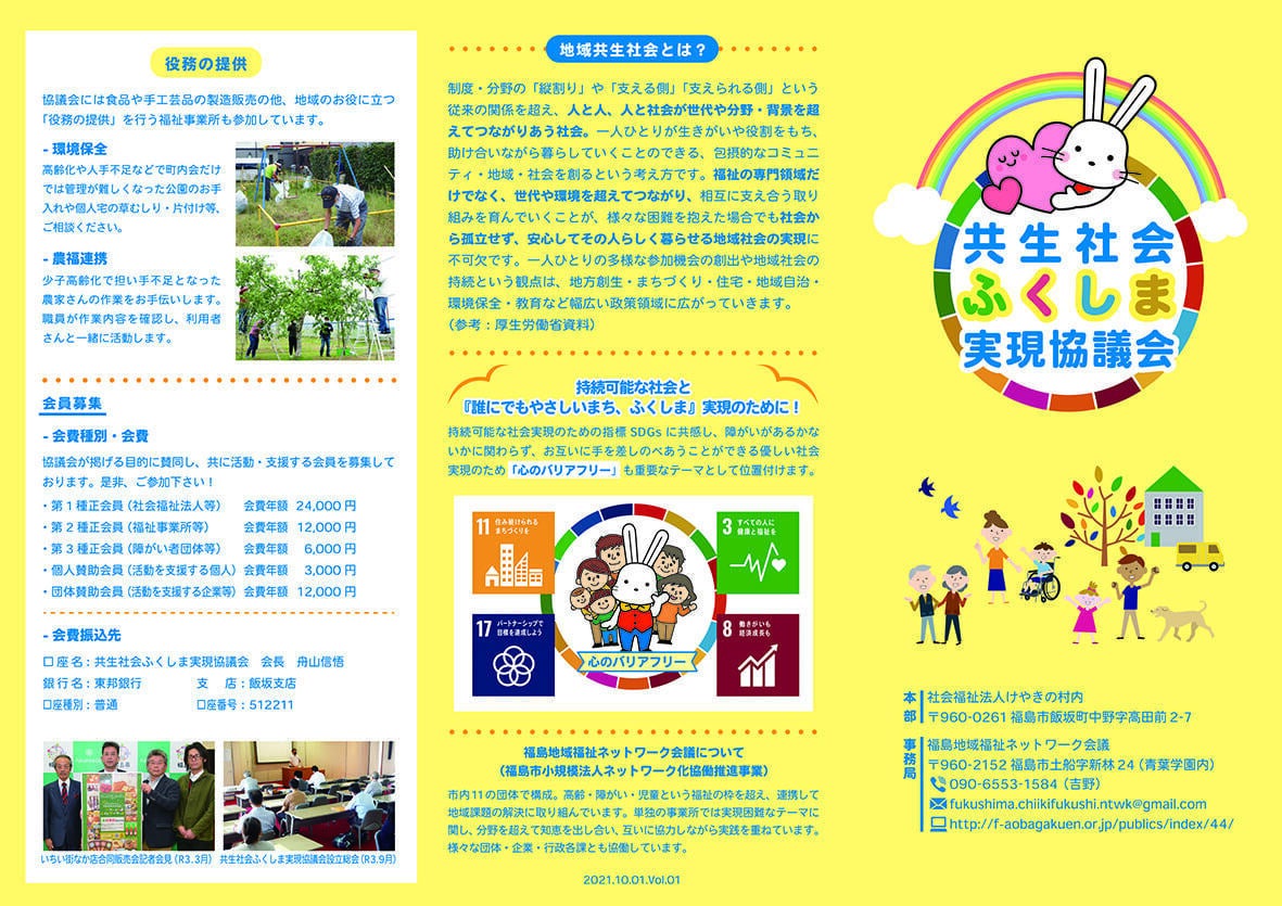 これまで任意団体の「共生社会ふくしま実現協議会」として共生社会の実現に向けて県北地区で様々な活動を行ってまいりました。