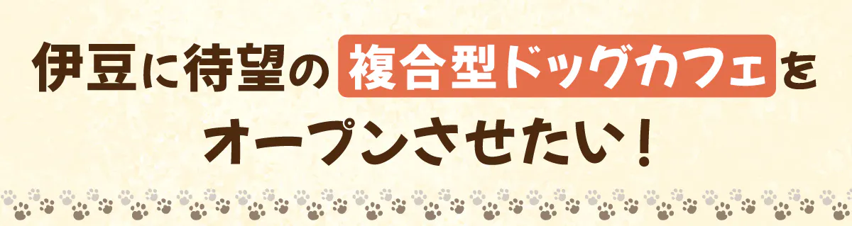 このたび、伊豆地方に大型犬も安心して遊べるドッグラン付きカフェのオープンを目指すことになりました。