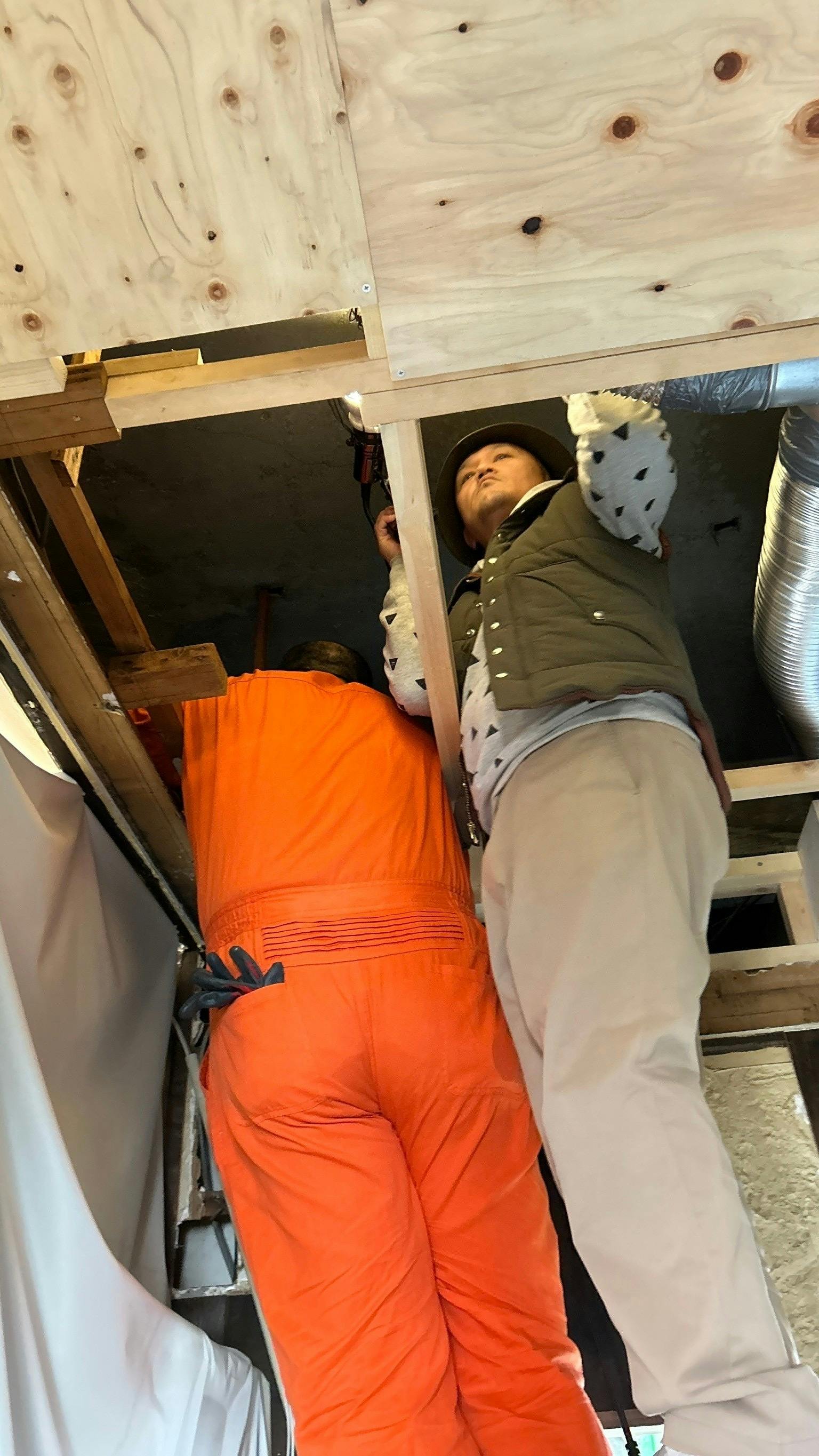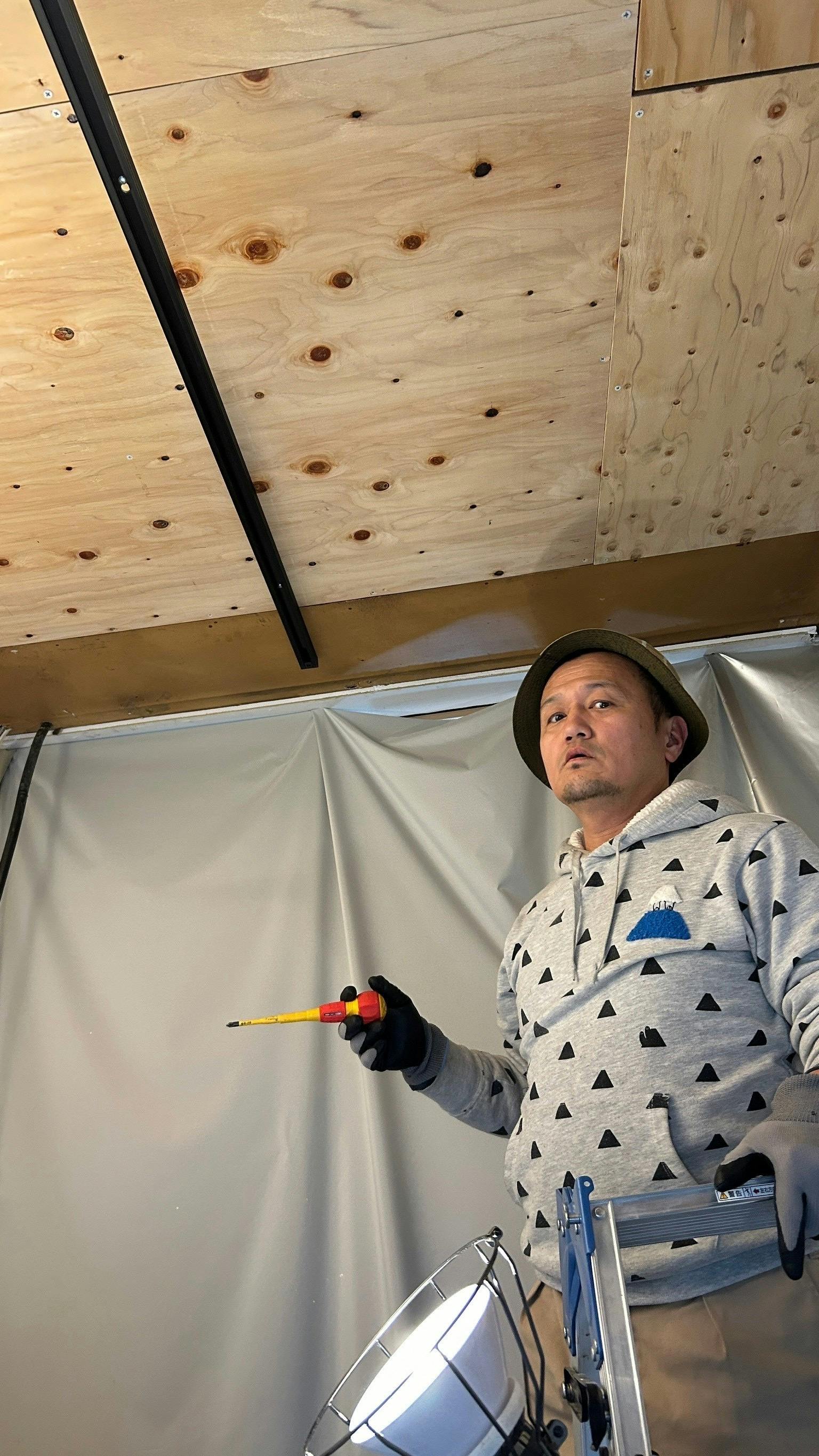 2/24(月)は和歌女将にお店を任せて、朝から店長レイジと友人の2人で厨房の手前のカウンターの中になる部分の天井リフォームを実施しました。