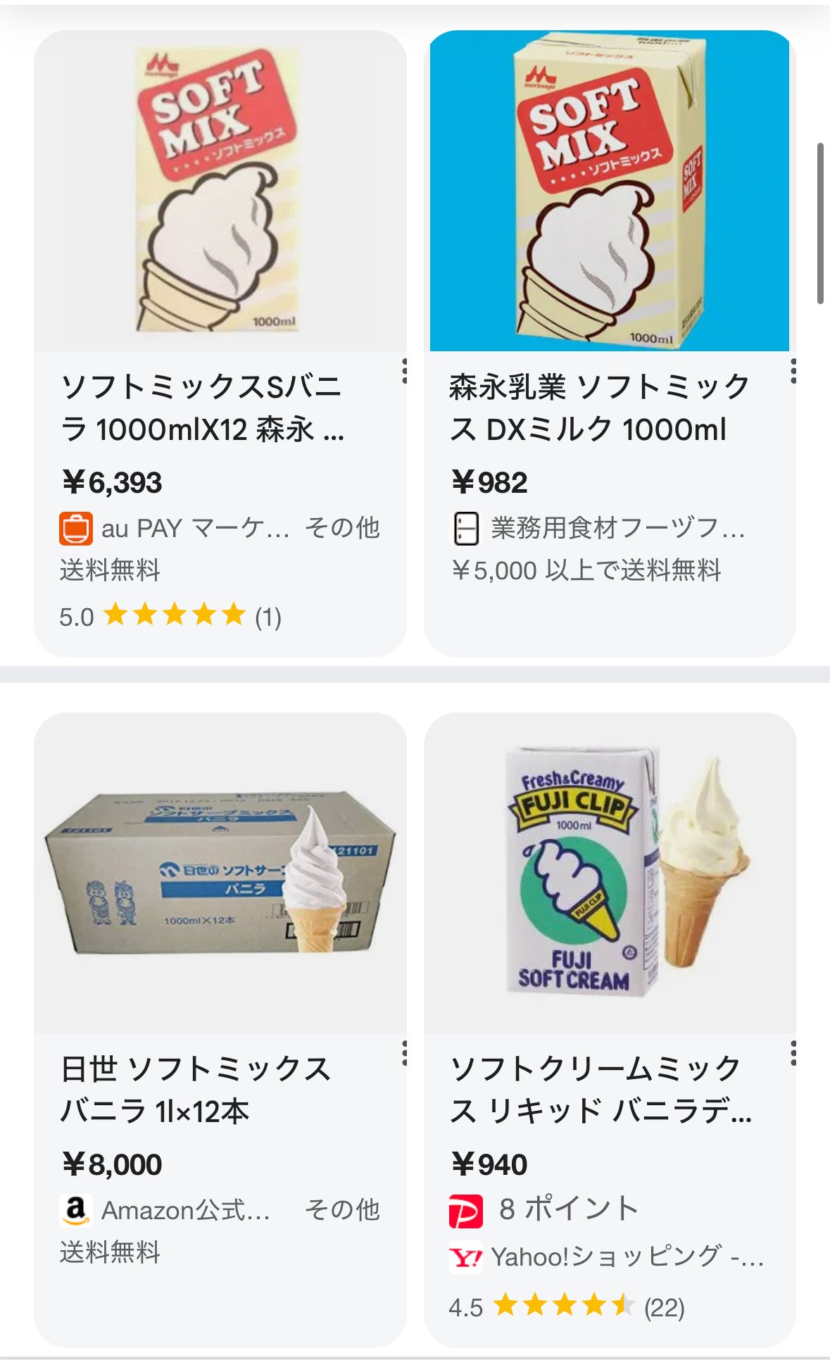 他のお店で出されている出されているソフトクリームはこんな感じの既製品が使われております。