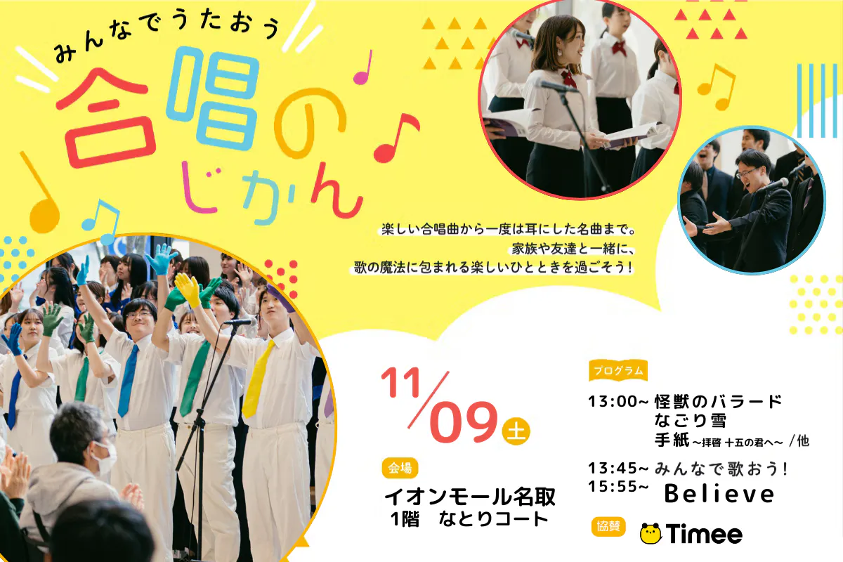 2023年10月にイオンモール新利府にて「合唱のじかん」を実施し、累計400名を超えるお客様にお越しいただき、合唱の魅力を届けることができました。