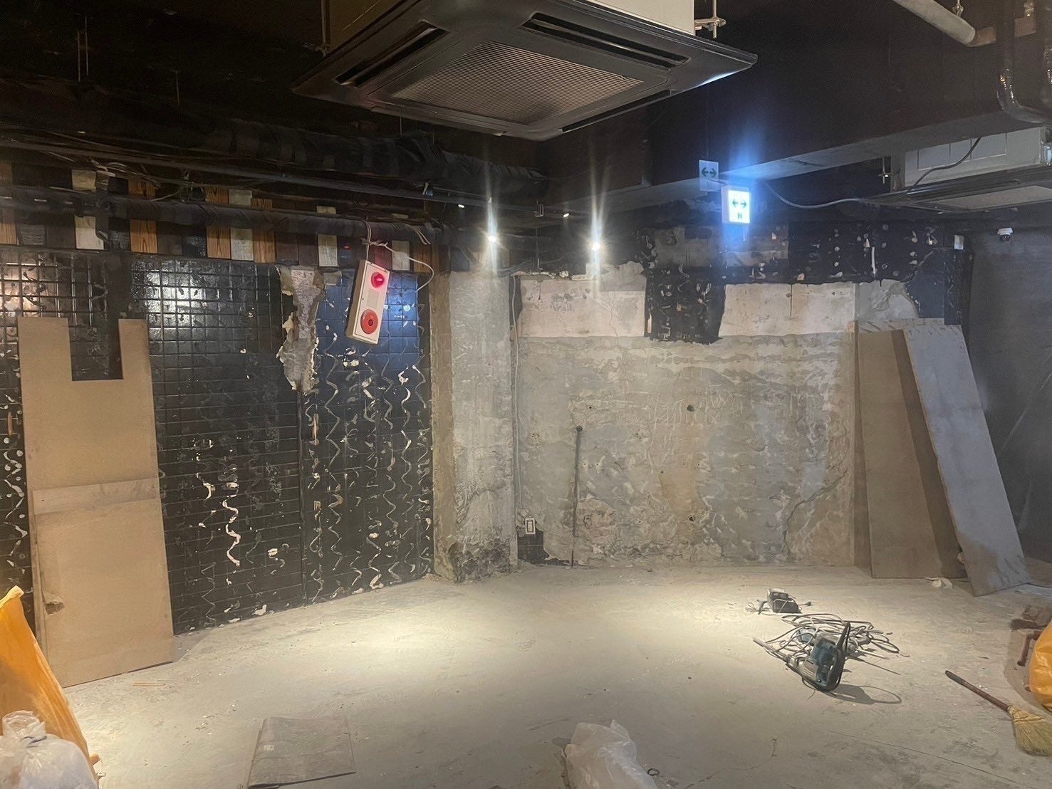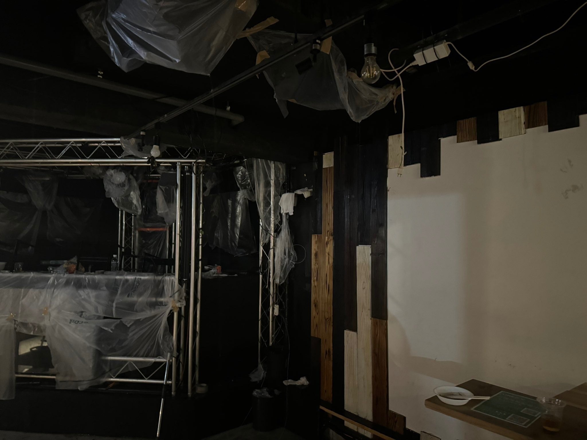 その日は貸切予約イベント中唐突に店舗天井より水漏れし、漏電ブレーカーが落ち、店内が暗闇に包まれました。
