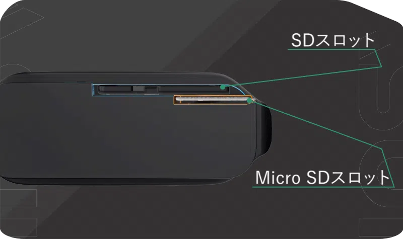 SDカードを入れたままMicro SDもスムーズに取り出せる工夫を凝らしたデザインで、スムーズに使用でき撮影に集中できます。