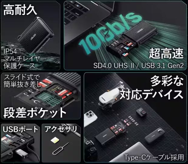 また、ASUIZO CAZEは高速読み込み機能も備えており、撮影後すぐにデータを移動することが可能です。これにより、撮影に忙しい合間にもスムーズにデータ管理ができ、ストレスを感じることなく次の撮影に臨めます。特に旅行やイベントでの撮影が多い方には、時短と安心を両立させるこのカードリーダーは非常に頼もしい存在です。