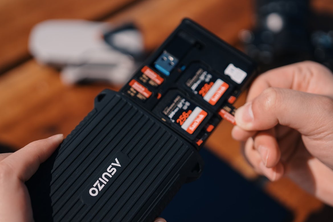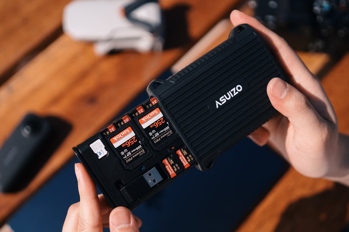 また、ASUIZO CAZEのカードリーダーは、SDカードとMicroSDカードを同時に読み込むことができるため、データ管理がさらにスムーズになります。例えば、撮影した写真を即座にバックアップしながら、別のカードからデータを取り込むといった作業が可能です。これにより、撮影後のデータ整理が簡単に行えるため、ストレスなく作業を進めることができます。
