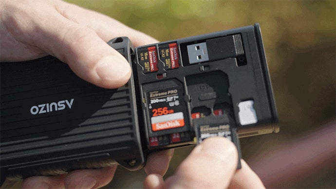 〈ASUIZO CAZEのカードリーダーは、SDカード、MicroSDカード、USBデバイスを同時に読み込むことができる画期的なデザインを採用しています。この機能により、複数のデータソースから同時にデータを転送できるため、作業の効率が大幅に向上します。 〉