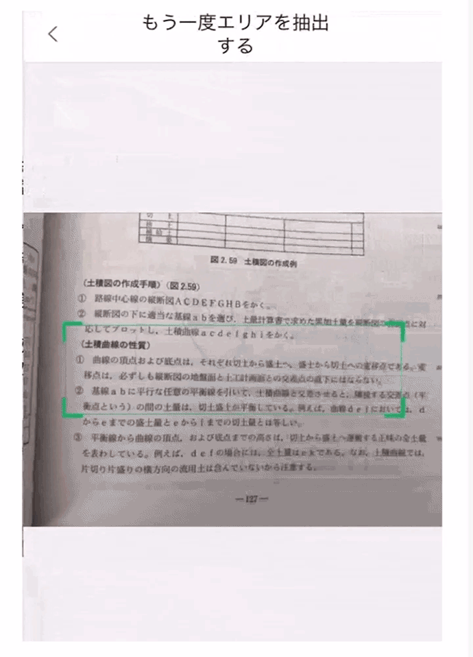 印字された文字を撮影した画像の中から読み取りたい範囲を選択し、電子テキスト化しています