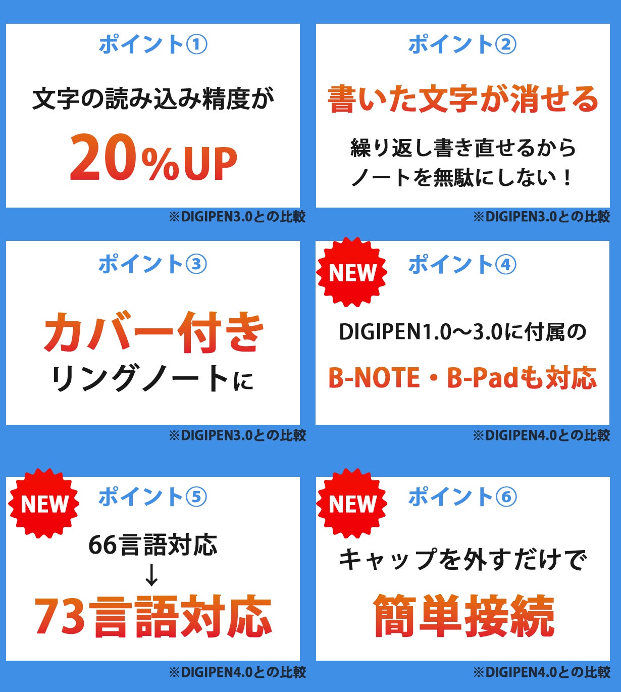 A. 以前のDIGIPEN 1.0〜3.0は今回のノートを使用できないのでご注意ください。