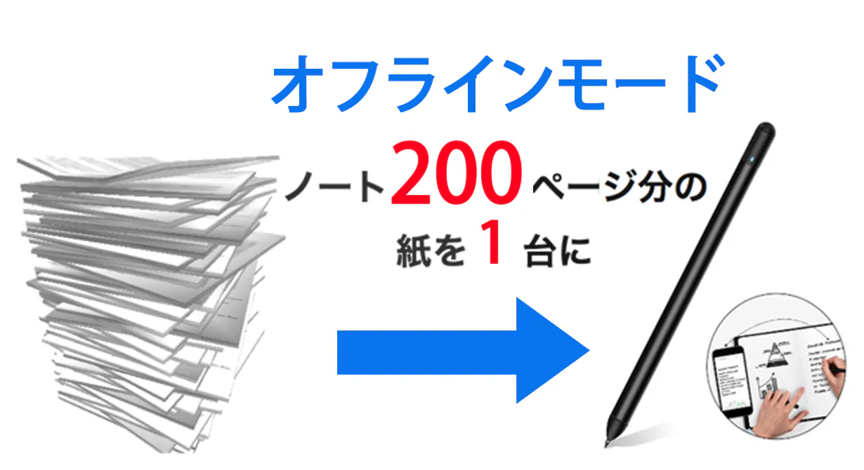 DIGIPEN本体には4MBの内蔵メモリを搭載しており、未連携状態(オフライン)でも「約200ページ分」の内容を保存可能です。