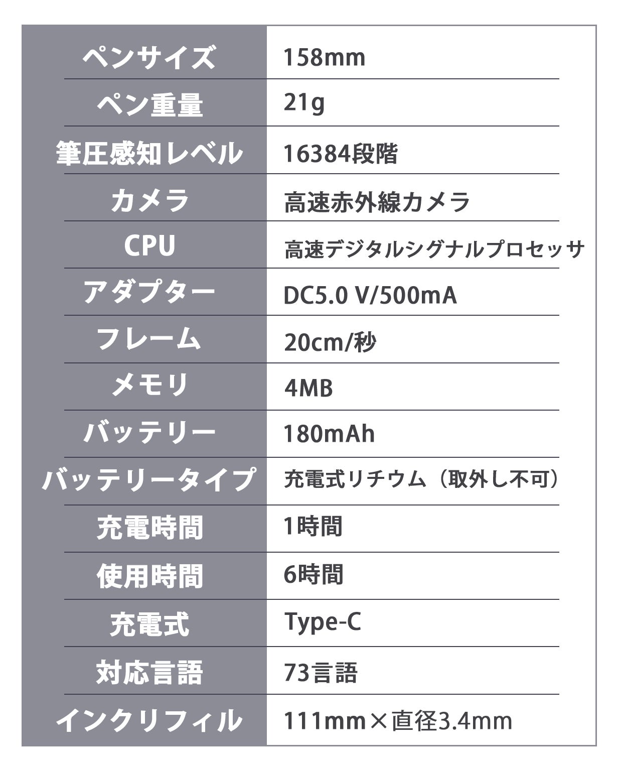DIGIPENは約1時間の充電で6時間の連続使用が可能。終日の外出や会議でもバッテリー切れの心配は無用です。