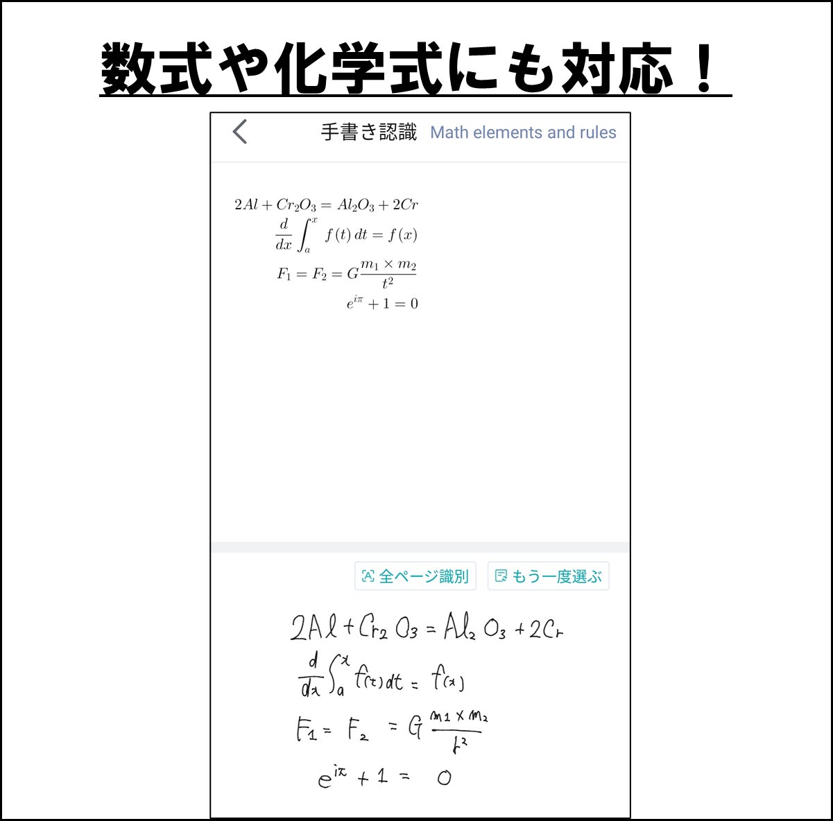 手書きした化学式や数式を読み取り、電子テキスト化しています。