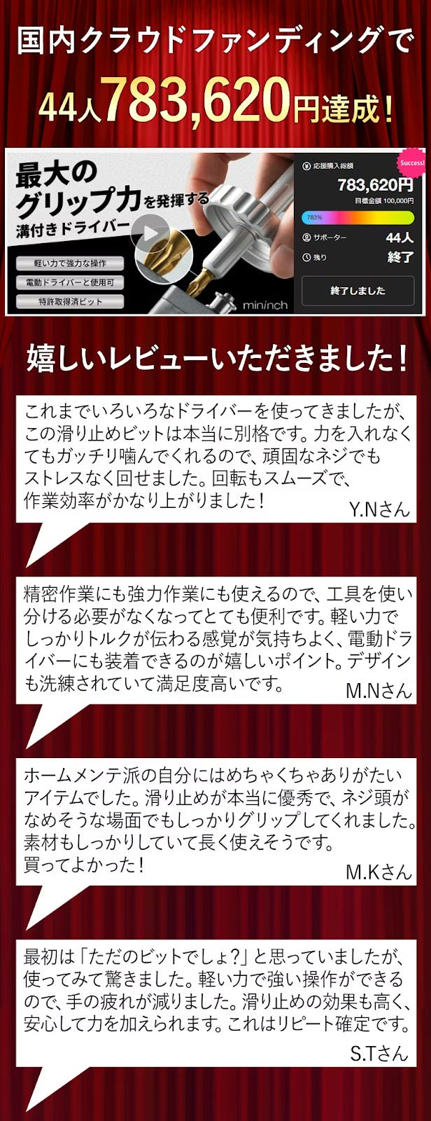 今回は皆さまに「素材と構造にこだわった最新ドライバー。スムーズな回転で少ない力でも強力に操作でき、電動ドライバーとも併用可能な万能モデル」プロジェクトを紹介させて頂きます。プレビューページをお気に入り登録して公開をお待ちください!