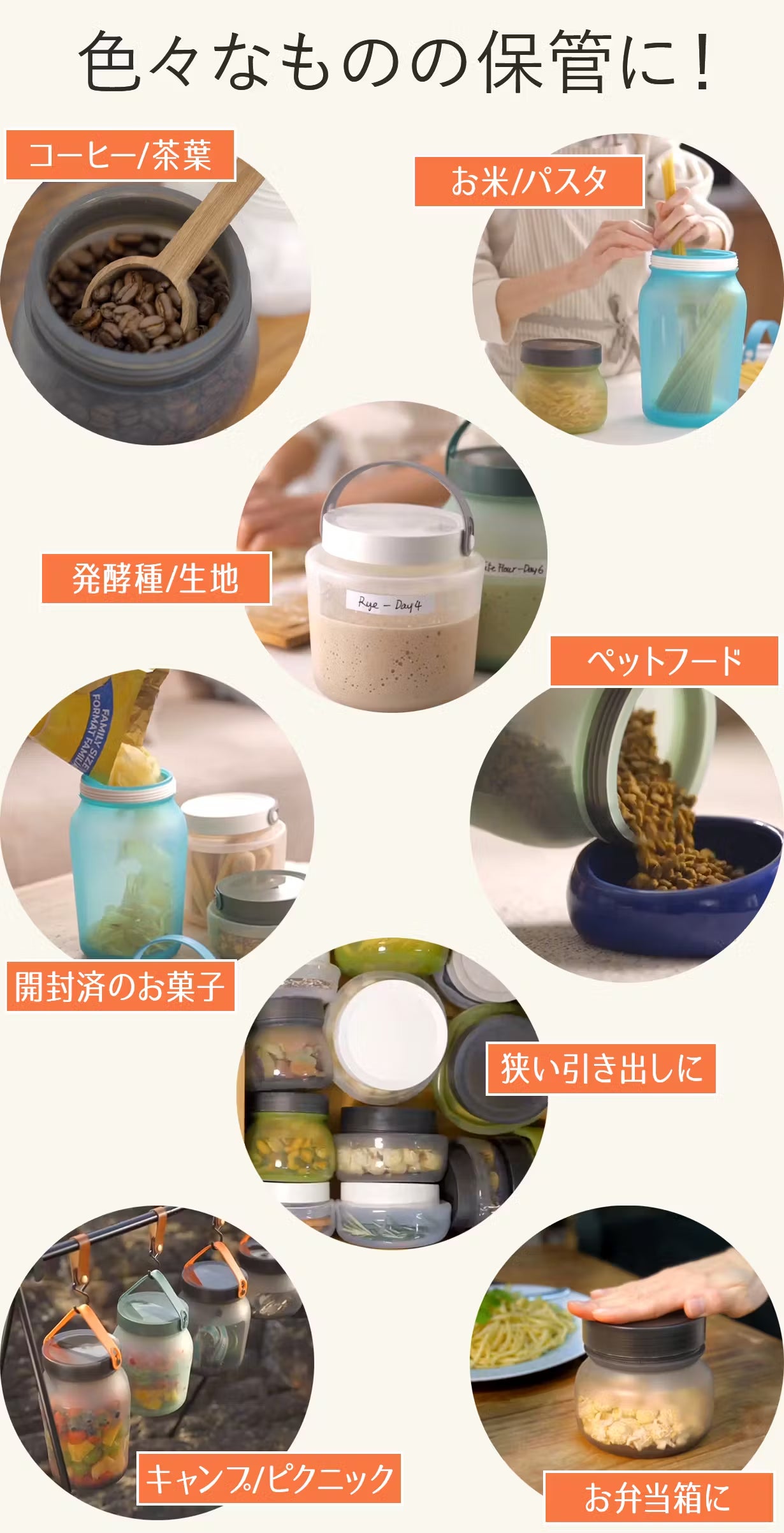Flexi Jar V2は、その多用途性と高い機能性で、あらゆるシーンで活躍する万能保存容器です。コーヒーや茶葉、発酵種や生地、お米やパスタ、さらにはペットフードまで、幅広い用途に対応します。Flexi Jar V2で、キッチンや日常生活をより便利で快適にしましょう。日々の生活を豊かにするために、Flexi Jar V2をぜひお試しください。