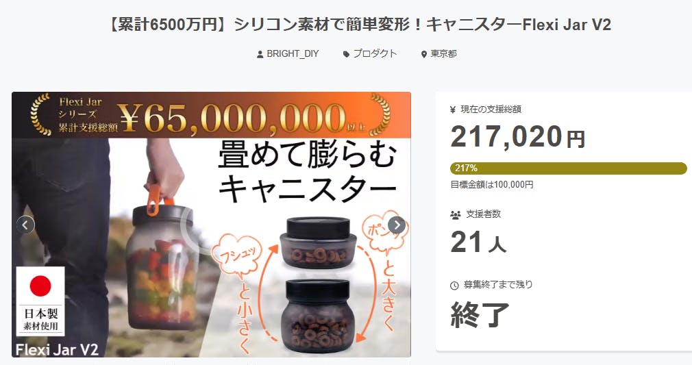 【累計6500万円】シリコン素材で簡単変形!キャニスターFlexi Jar V2にご興味をお持ちいただきありがとうございます。