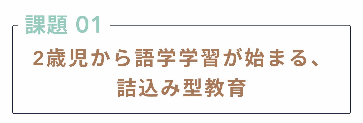 幼少期からの知識学習で、学力の向上は見られるものの、子どもの主体性や仲間とやお友達とともに協力し合う協調性、社会性が身に着けにくいことが課題として挙げられています。