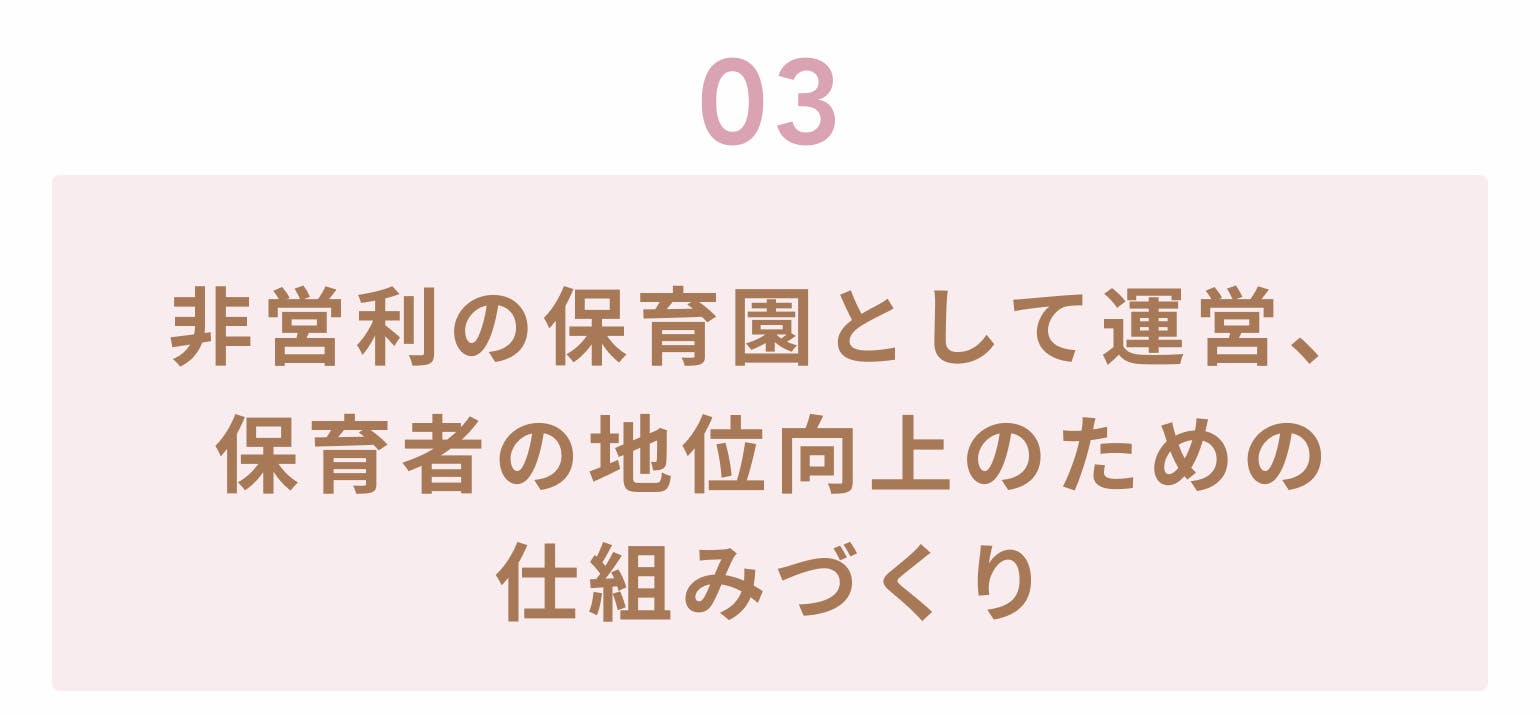 ですが、本来保育とは、単純におむつを替えたり身の回りのお世話をしたりすることや、詰込み型の教育をすることではありません。子どもの心身の発達や健康、心を育むためのコミュニケーションを積極的にとることや大人との関わりを通して「学びを提供する」こと。そして、子どもの権利を守り、安心、安全な環境を提供する「擁護」を合わせて保育と呼びます。