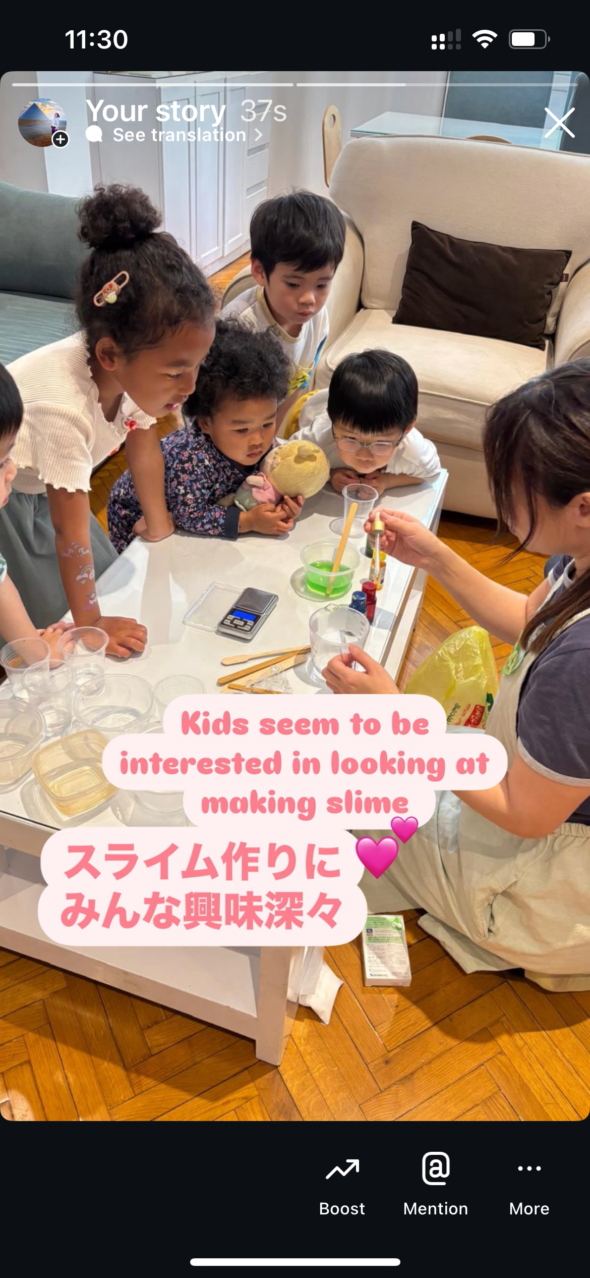 先週の土曜日、日本人のお子さんのためにワークショップを開催いたしました。エジプトにいるとなかなか直に触れ合うことのできないわらべうたや日本の歌、手遊び紙芝居などをしてから、スライム作りをしました私も日頃話していない日本語を話すことができ、その言葉を理解してくれる子どもたちと楽しい時間を共有できてとても嬉しいかったです。定期的にワークショップを行って日本の保育を広める活動を一歩一歩前進して行かれればと思います