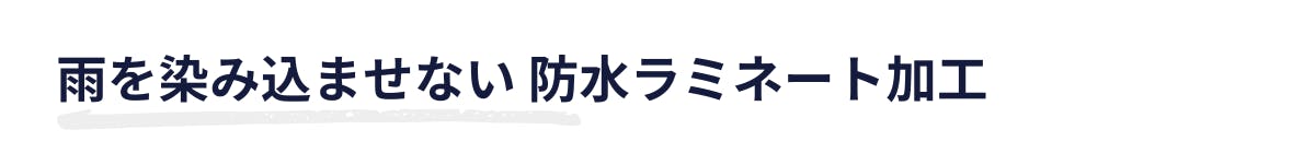 裏面に防水PVCラミネート加工を施しているので、表面から雨が染み込みまず、中程度の雨までしっかり防水。