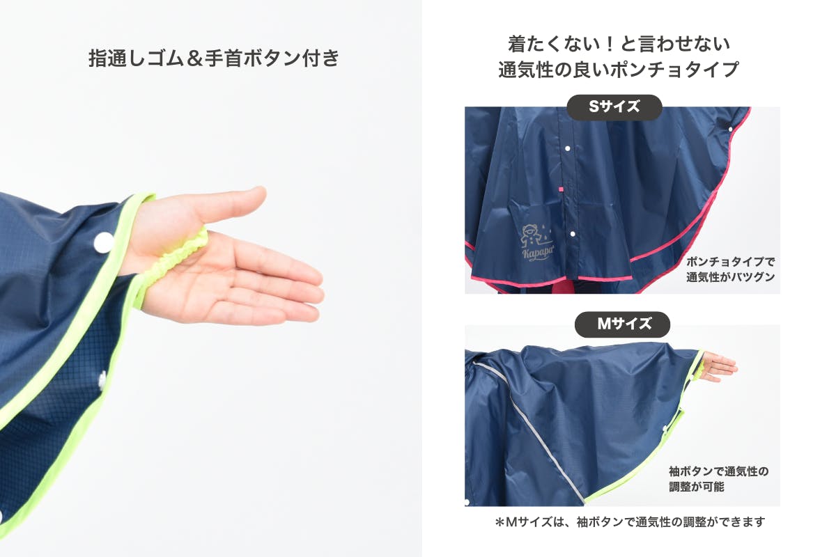 Kapapaレインポンチョは、サイズの幅が広く買い替えが不要となるので、実はコストパフォーマンスも抜群!