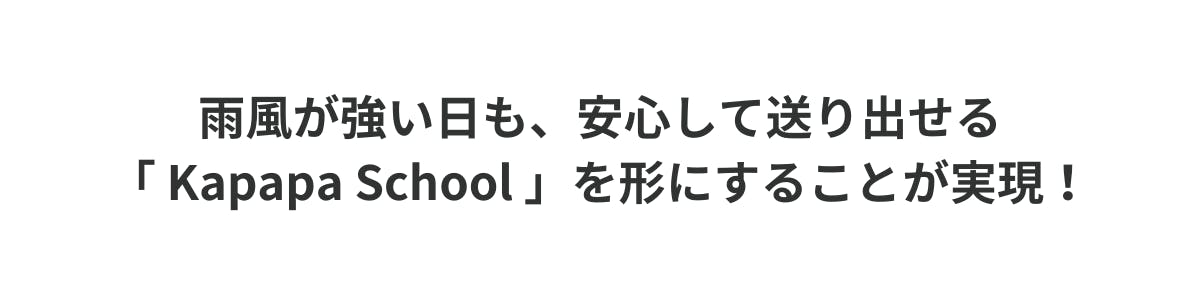 今回のKapapa Schoolは「雨風が強い日も安心して送り出せる 」をコンセプトにした、新シリーズ!
