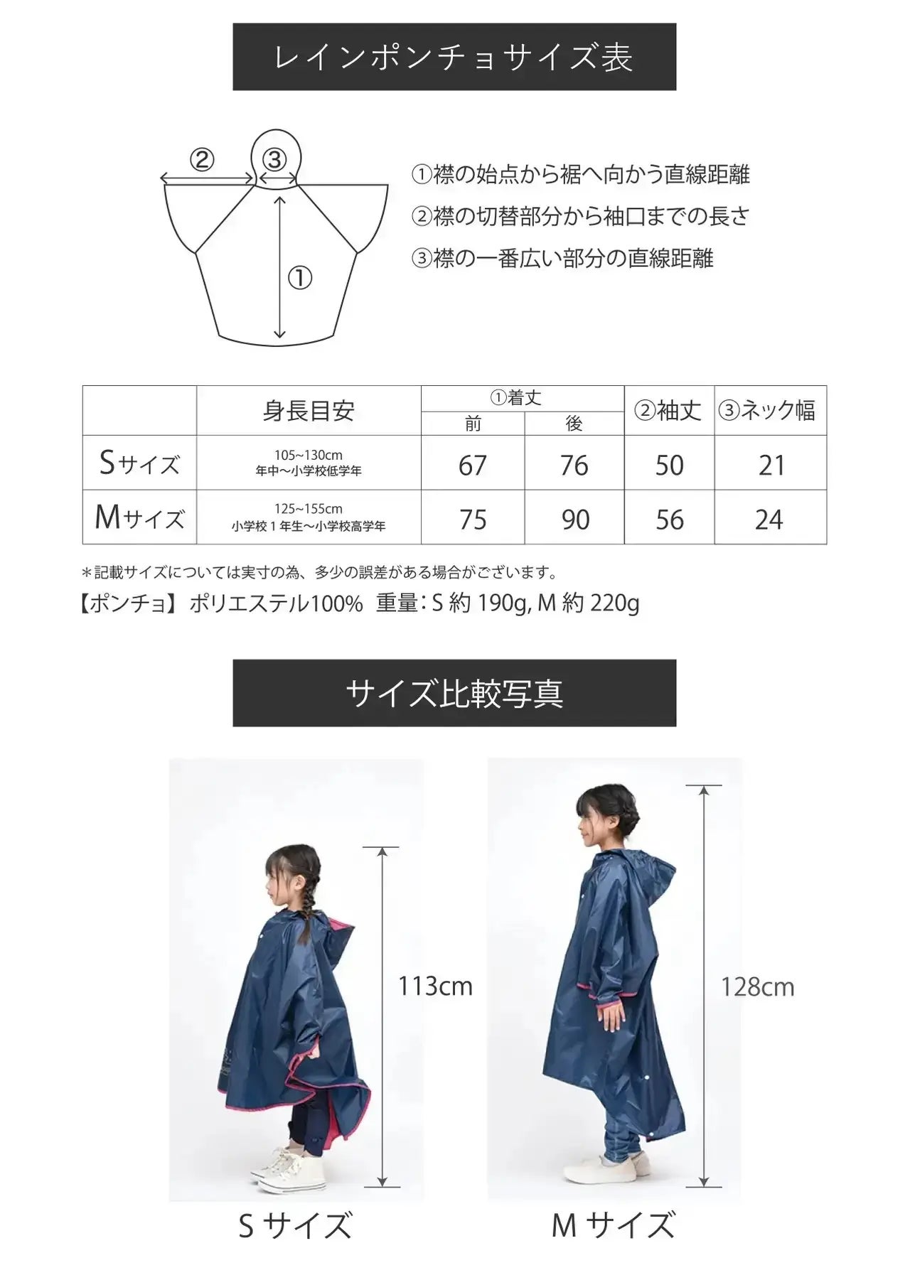 【レインポンチョと収納ポーチ / サイズ・カラーSPEC】