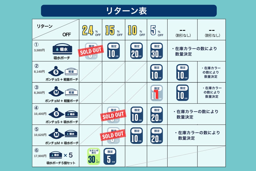 ・ポンチョM+収納ポーチ(軽量) / 早割 残り1人・ポンチョS+収納ポーチ(吸水)/ 超超早割 終了