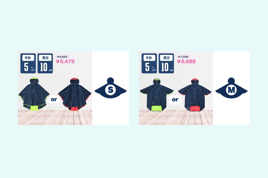 そのため、梅雨前にお届けできるセット数が限られてしまい、急遽「ポンチョ」のみを単品でご用意させていただくこととなりました。