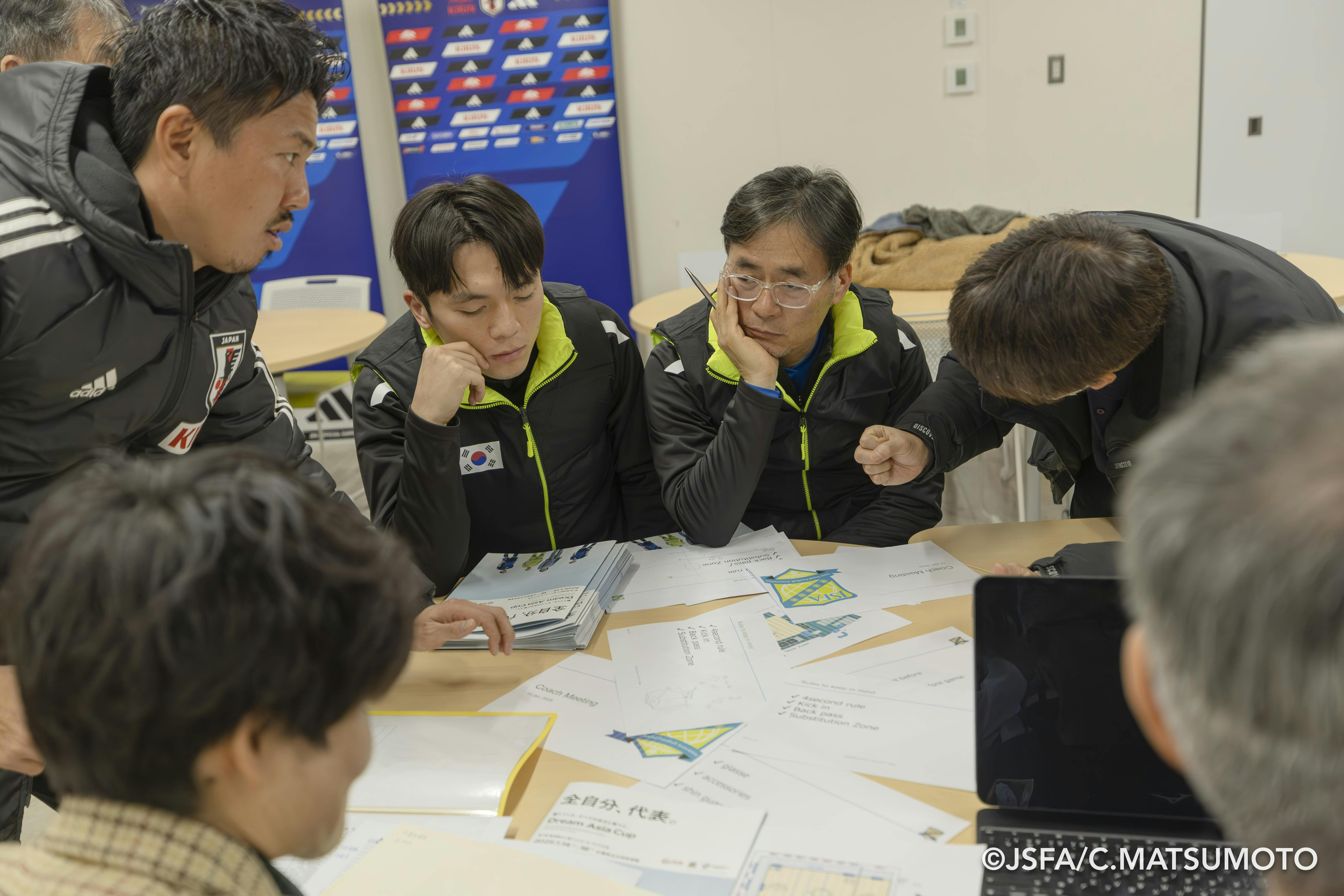 日本からは奥田監督と佐々理事長、韓国からはアン スボン監督とアン ジェモ選手兼コーチ、台湾からはヂャン団長とツァィ監督が出席。出来立てほやほやのパンフレットに選手たちの顔写真が掲載されているのを見て感嘆の声を挙げ、目を輝かせていたのが印象的でした。