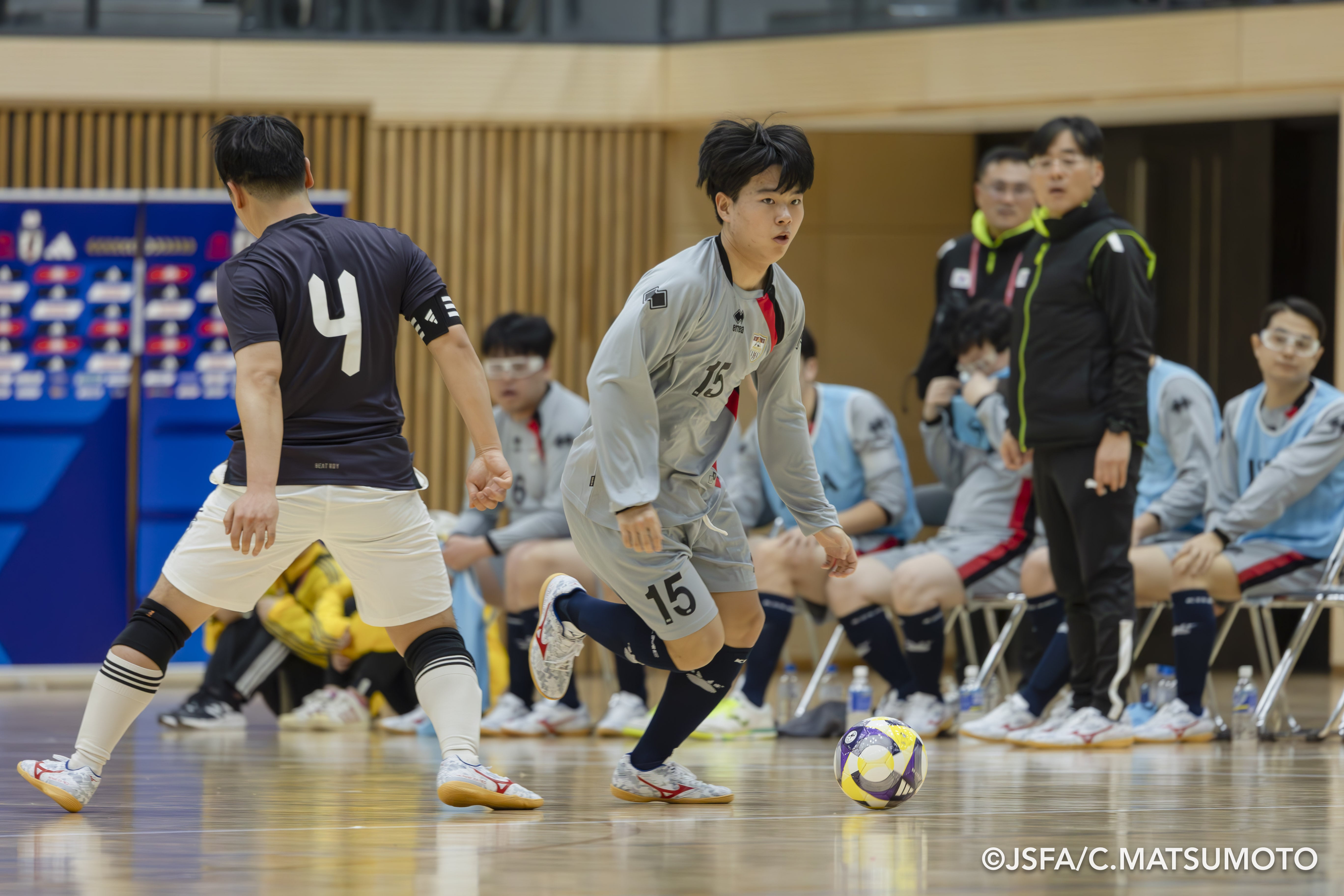 対する韓国は、序盤はコーチ兼務のアン・ジェモ選手がチームを引っ張り、それに呼応するように他の選手たちもどんどん攻撃に出ていきます。アン監督もその姿を静かに見つめています。