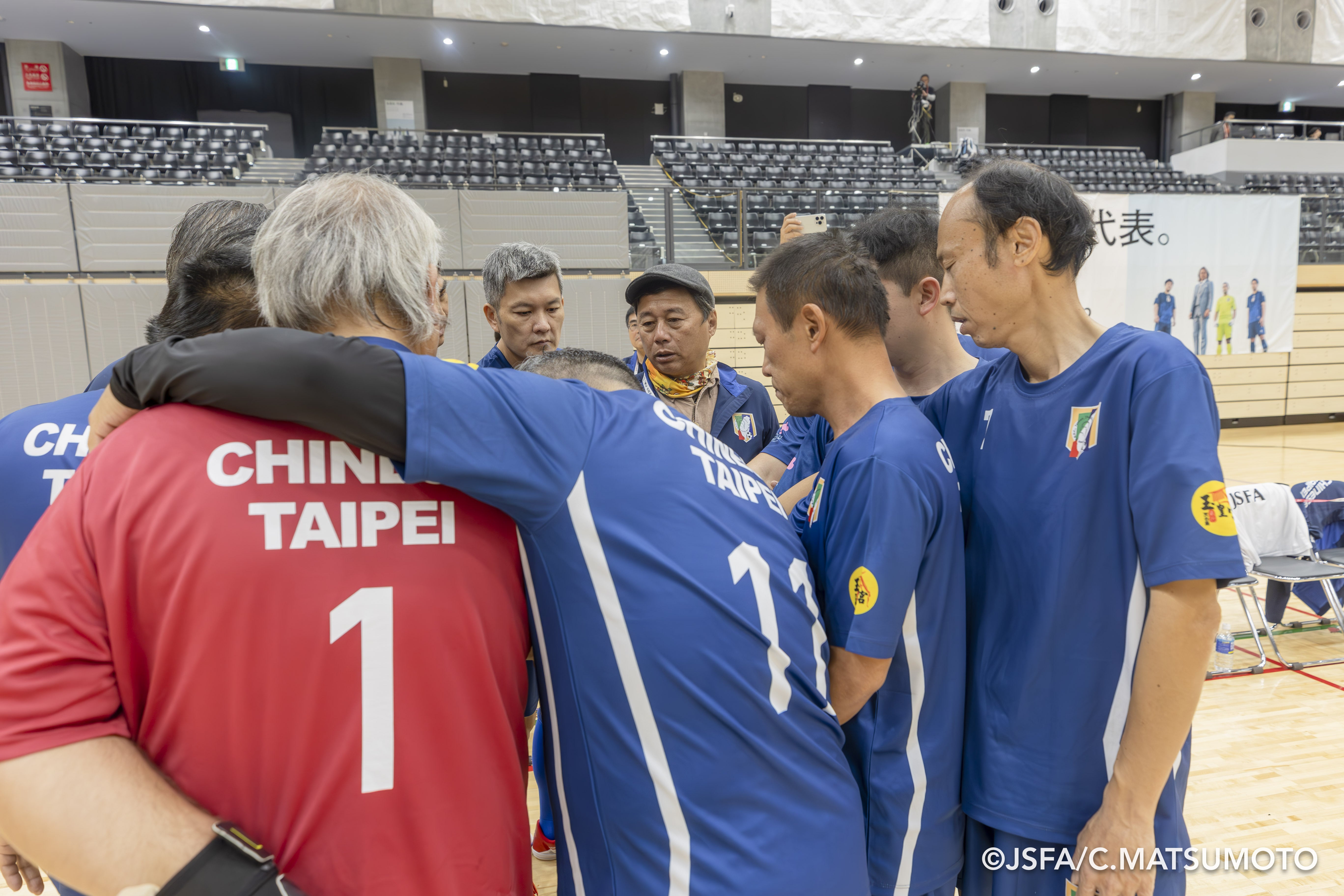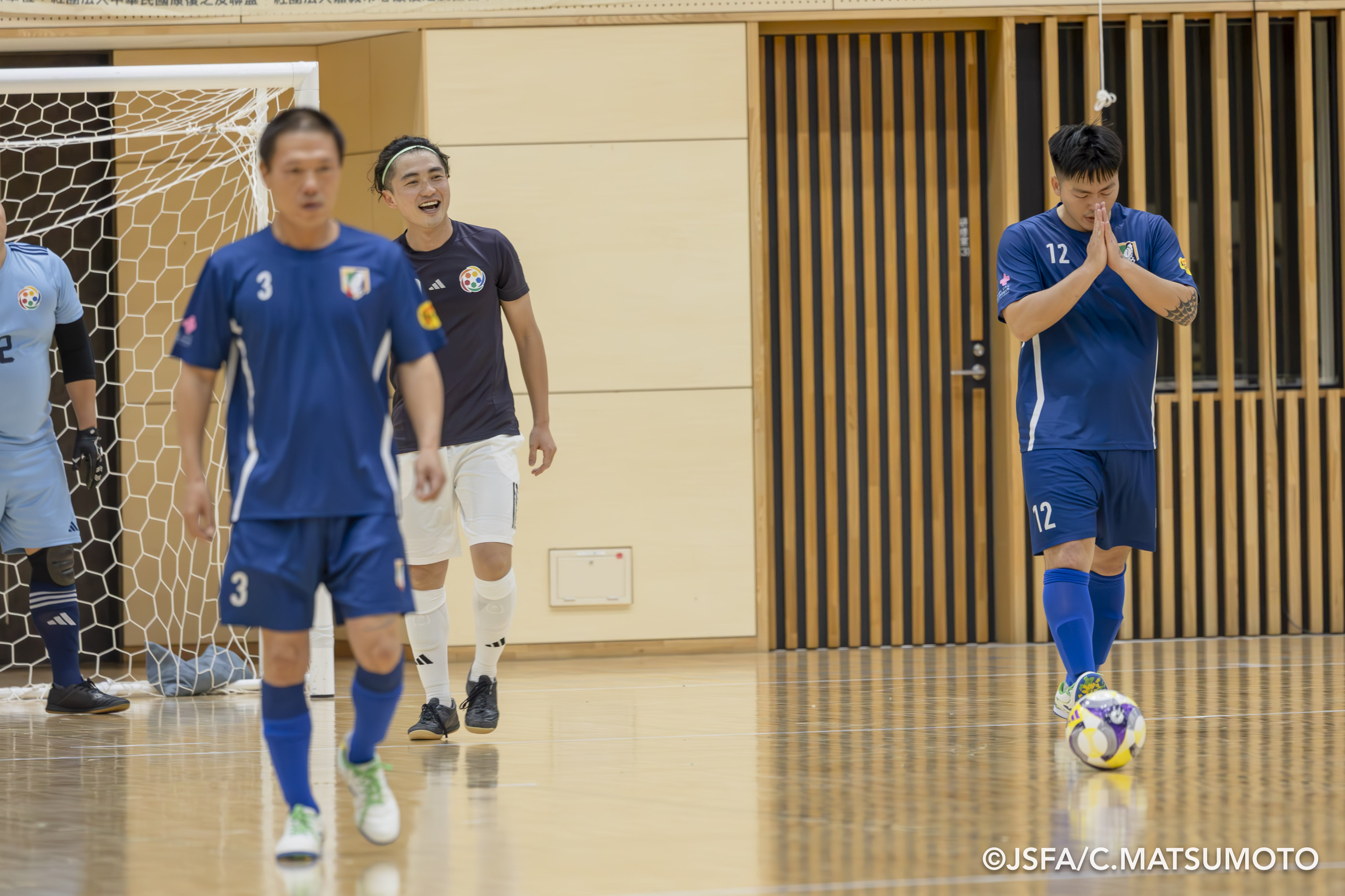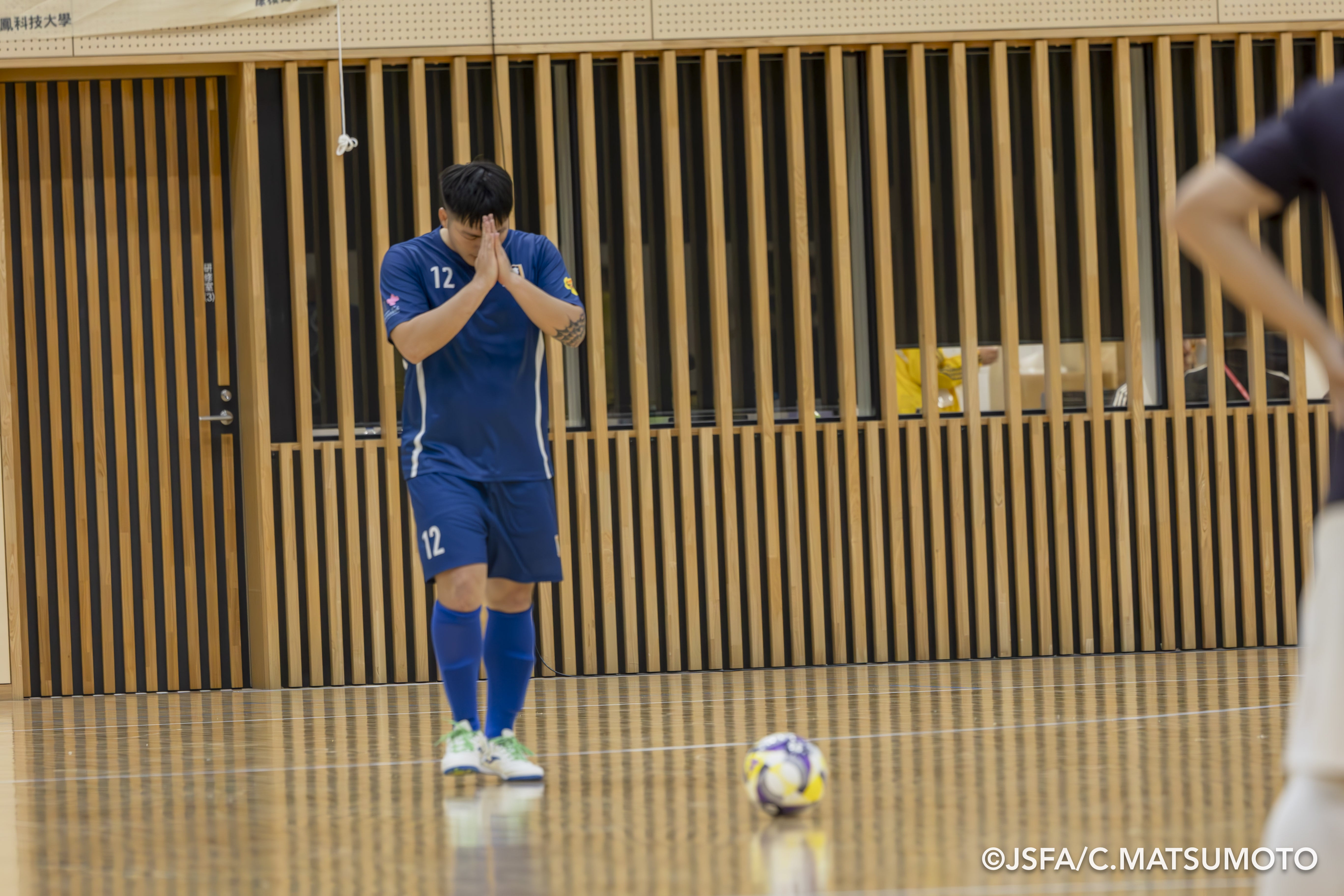 手を合わせ、感謝を捧げるワン選手。これから発展していく台湾のソーシャルフットボールにとって礎でもあり、希望にもなる1点となりました。