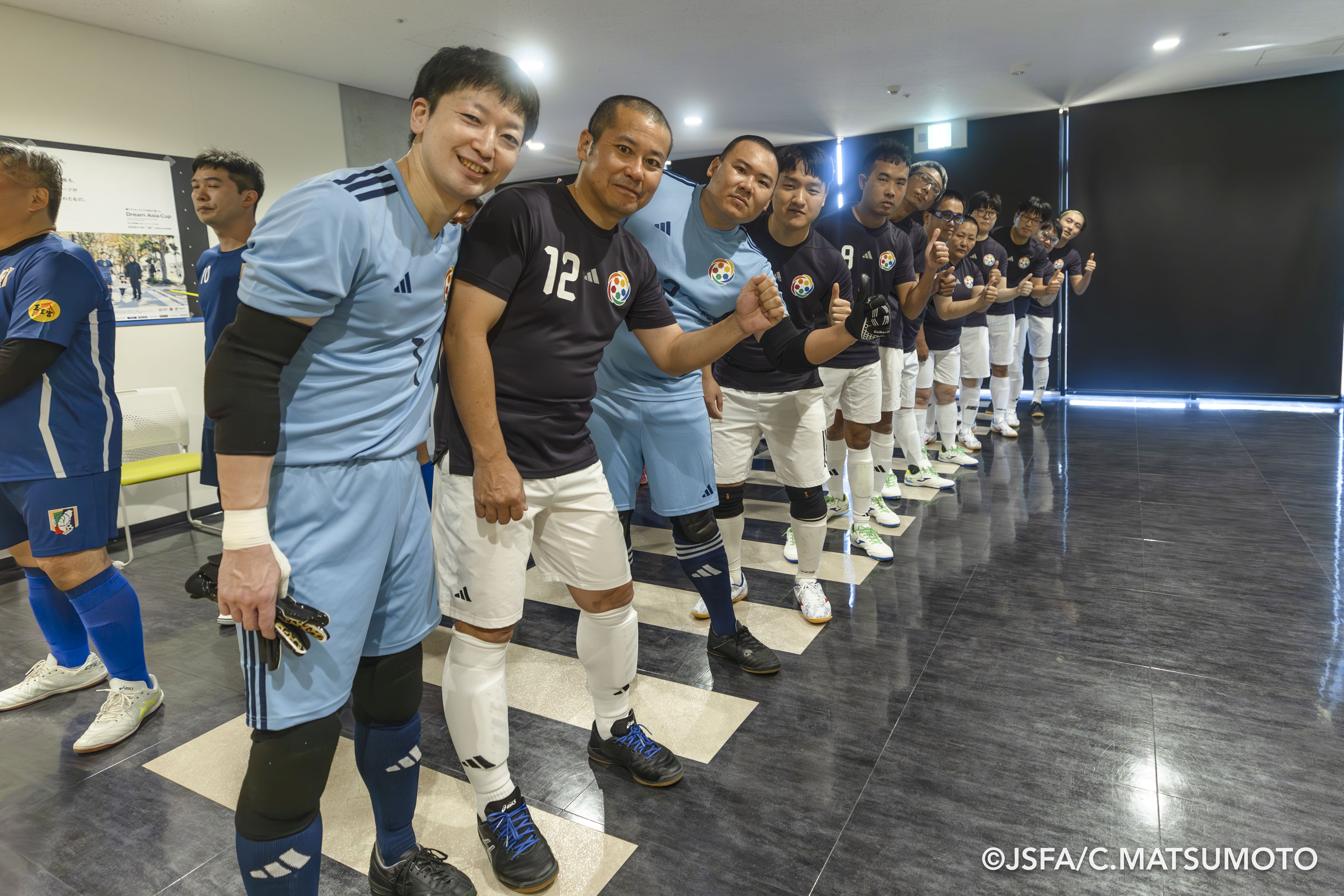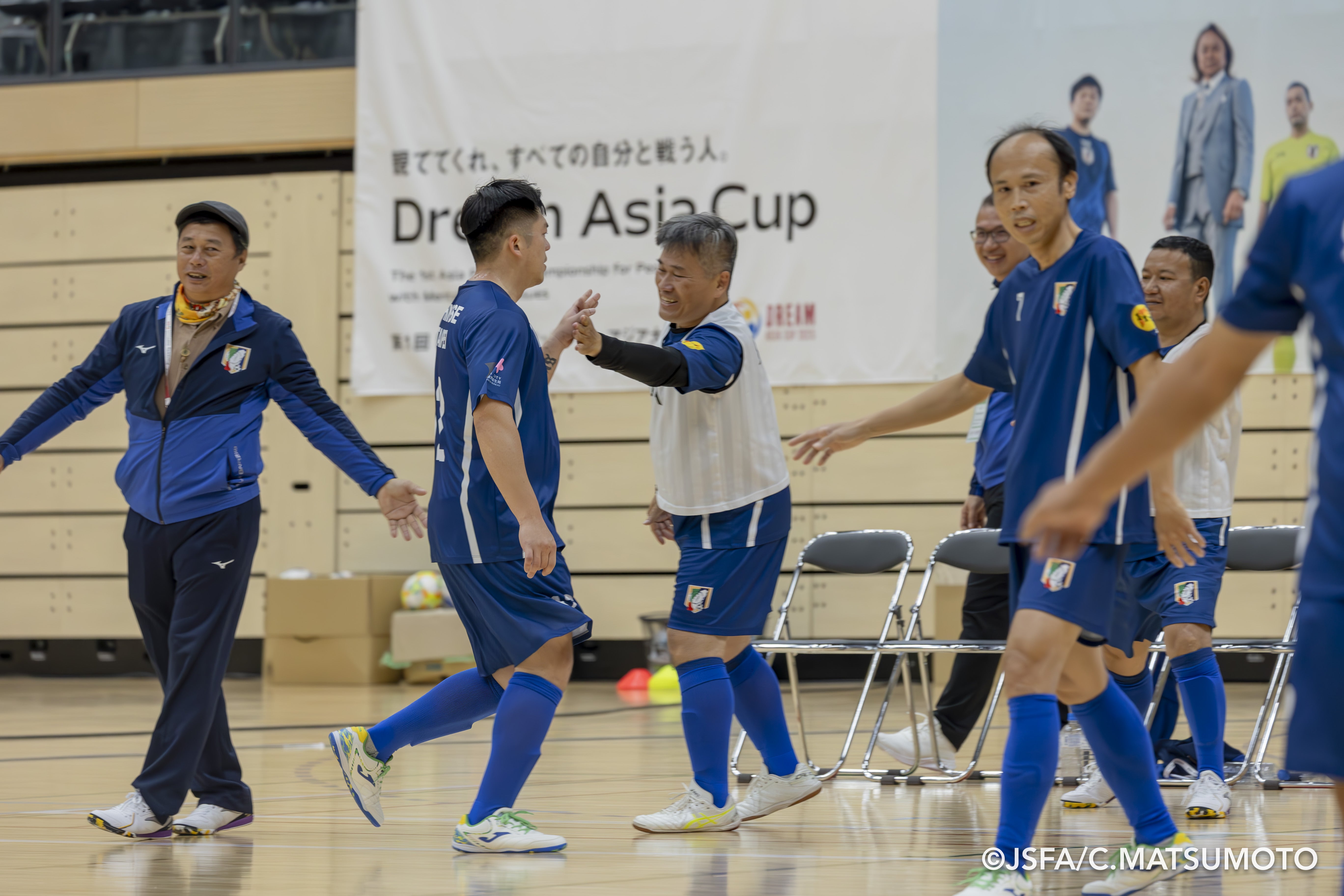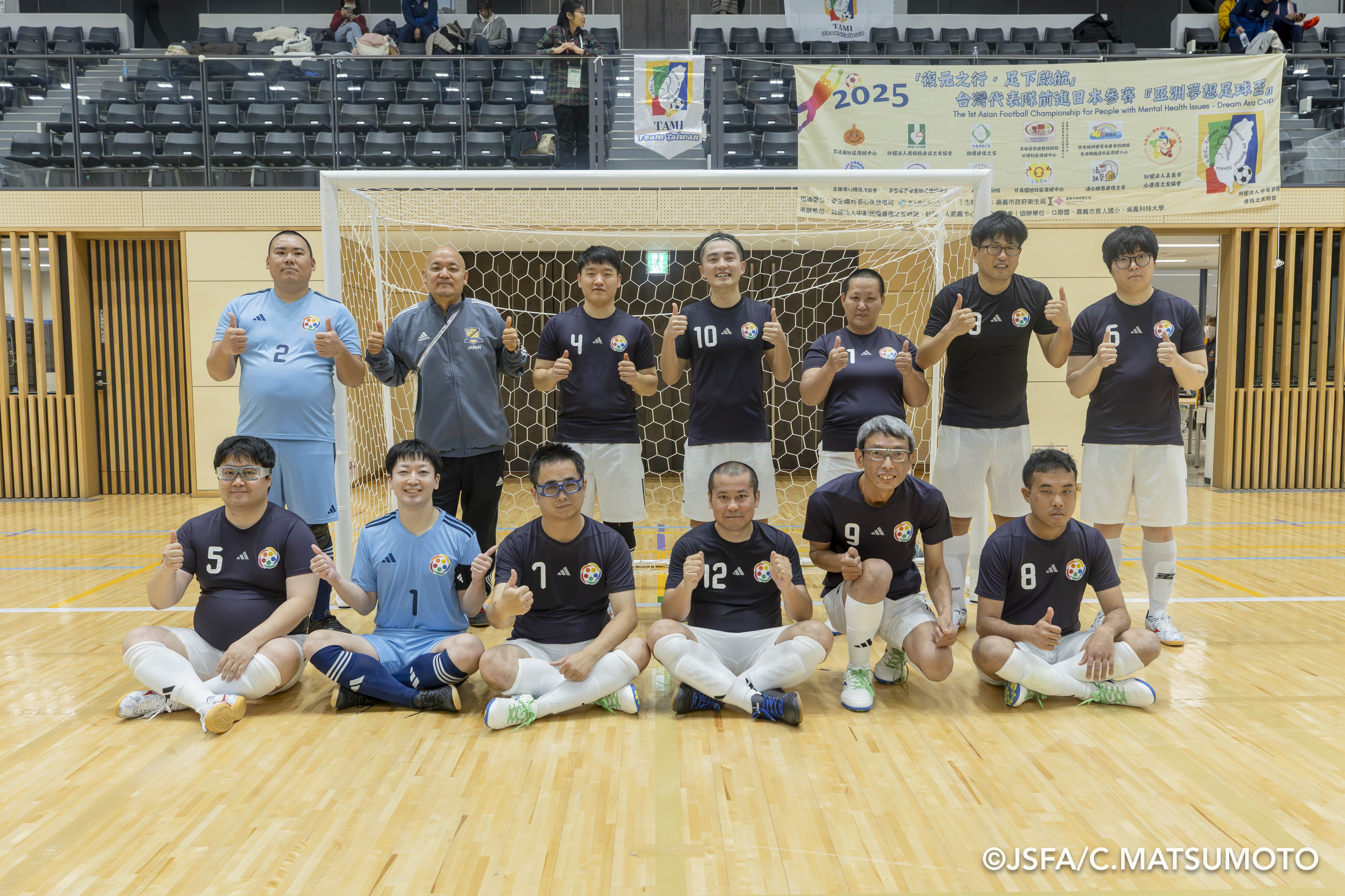 手を合わせ、感謝を捧げるワン選手。これから発展していく台湾のソーシャルフットボールにとって礎でもあり、希望にもなる1点となりました。