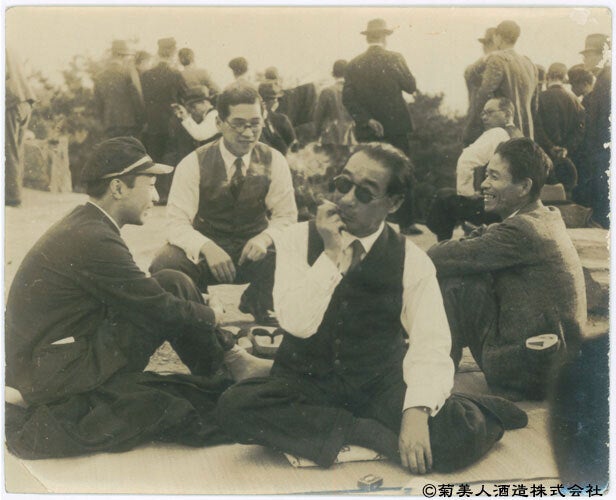 詩人 北原白秋は妻子、門下の歌人とともに菊美人の菰樽を飲み干した