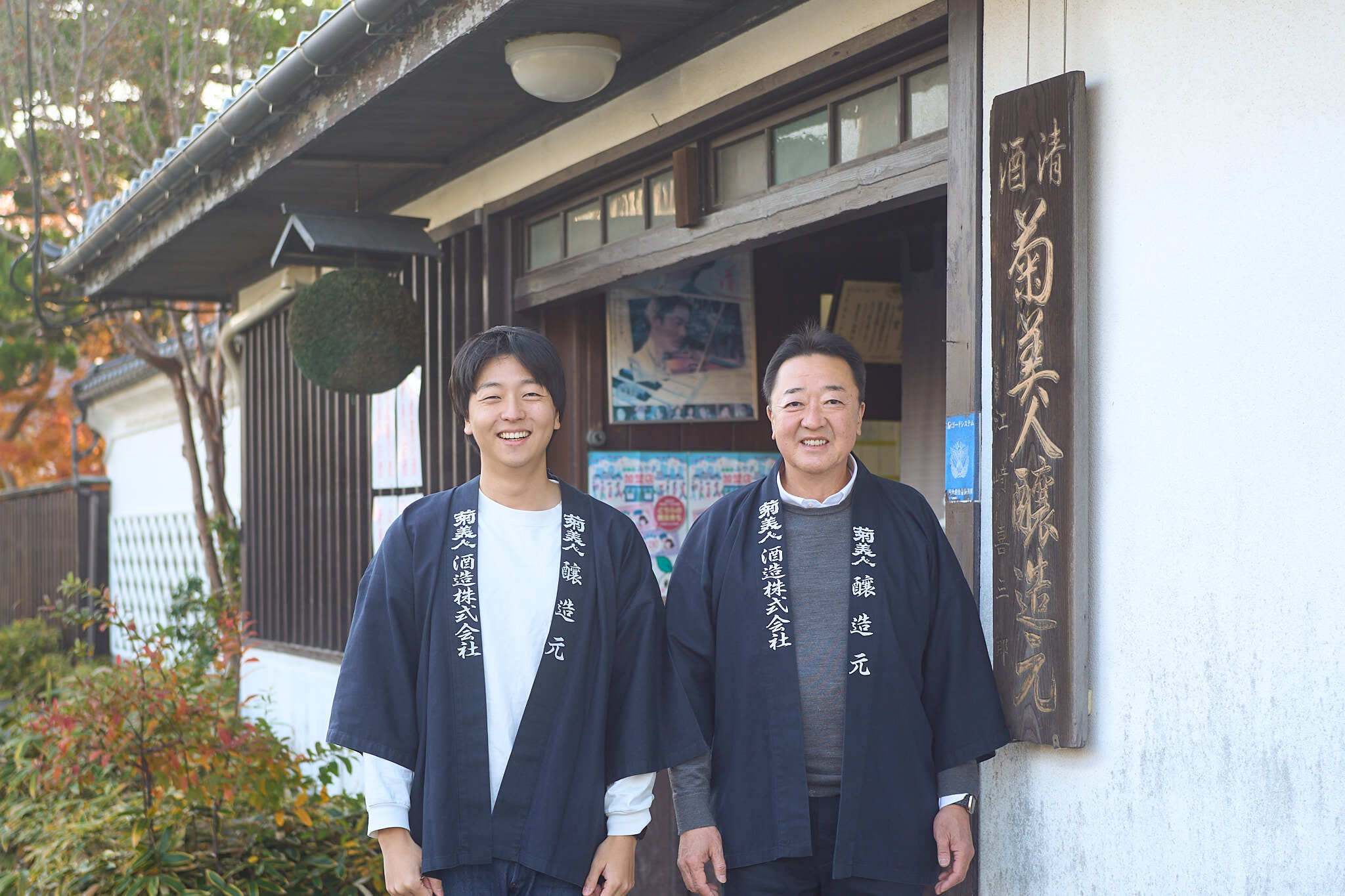 はじめまして、「菊美人酒造」の九代目 江崎俊介と十代目 江崎隆一郎です。