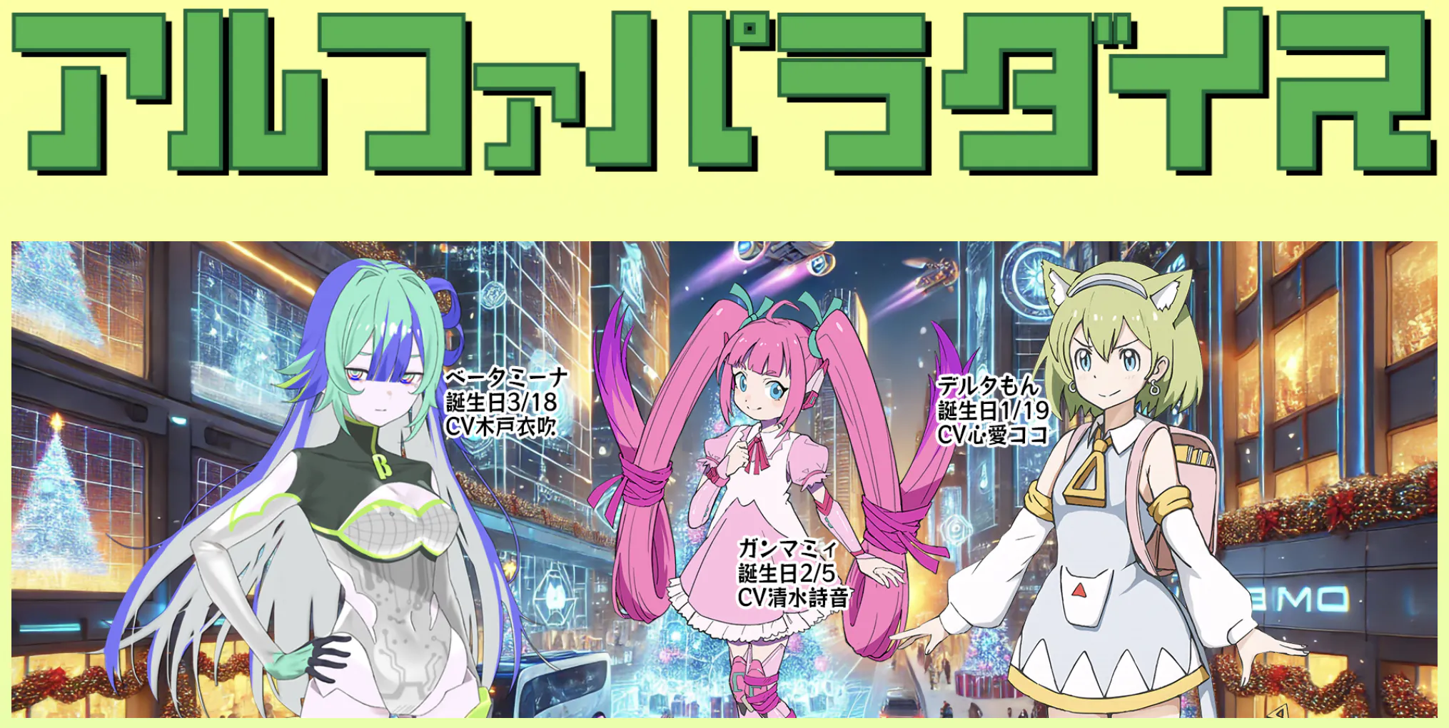 サンプルとして、当社キャラの「デルタもん」「ガンマミィ」がありますので、これらのボイスを聞いてみてください。